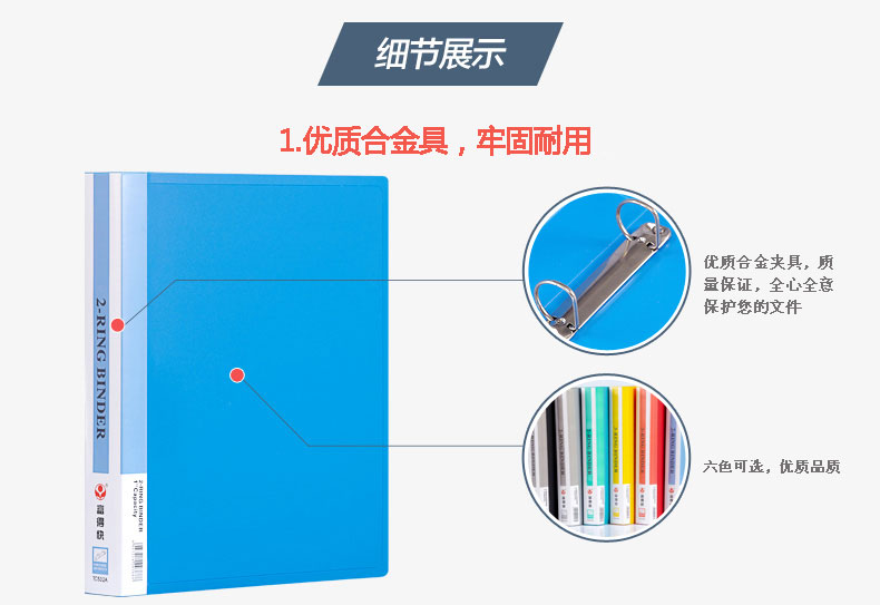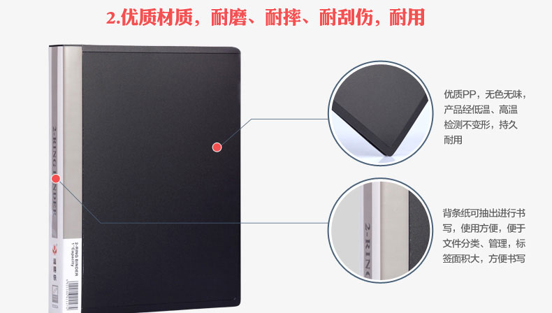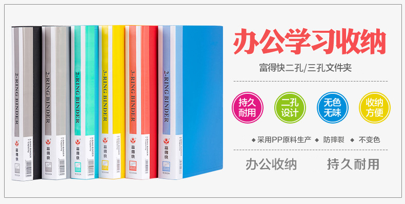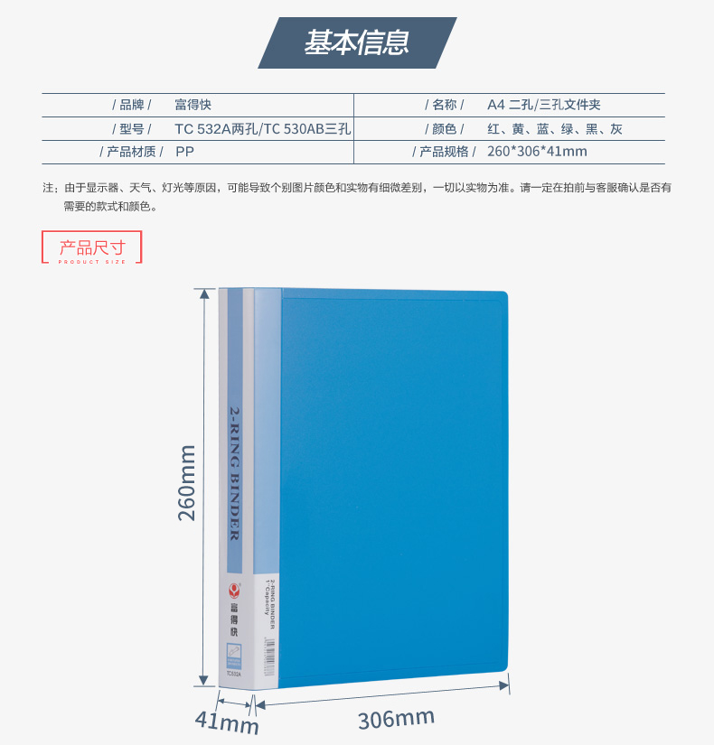 富得快 PP2孔夾 TC532A文件夾PP塑料插袋 A4/1.5寸2孔資料夾活頁夾