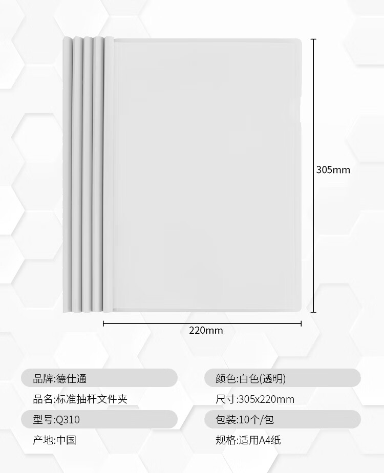 德仕通(dston) A4抽桿夾文件夾拉桿夾 a4紙資料夾Q310報(bào)告透明夾辦公文具簡(jiǎn)歷夾