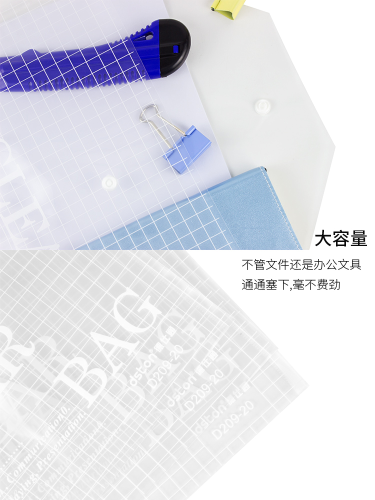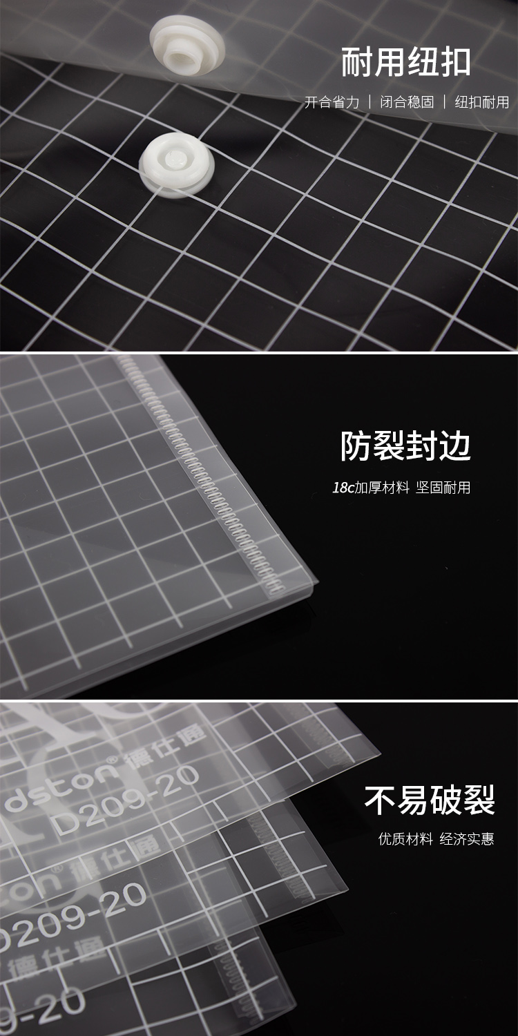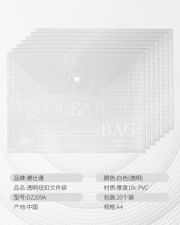 德仕通(dston) A4 紐扣袋 加厚白色透明按扣檔案文件袋 辦公用品資料整理收納袋 DZ209A 1個
