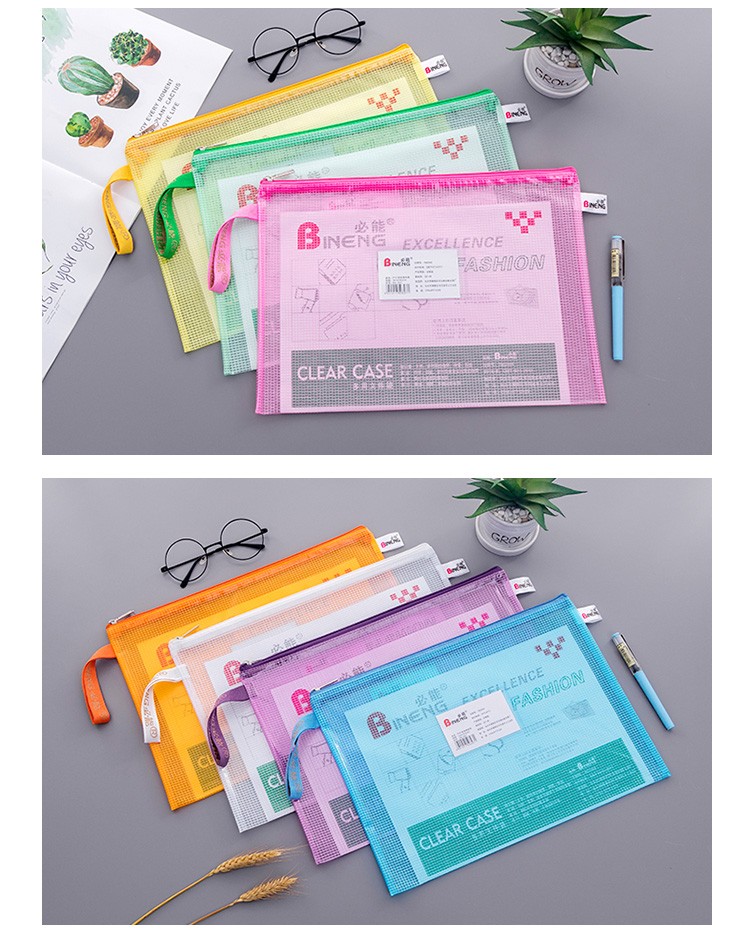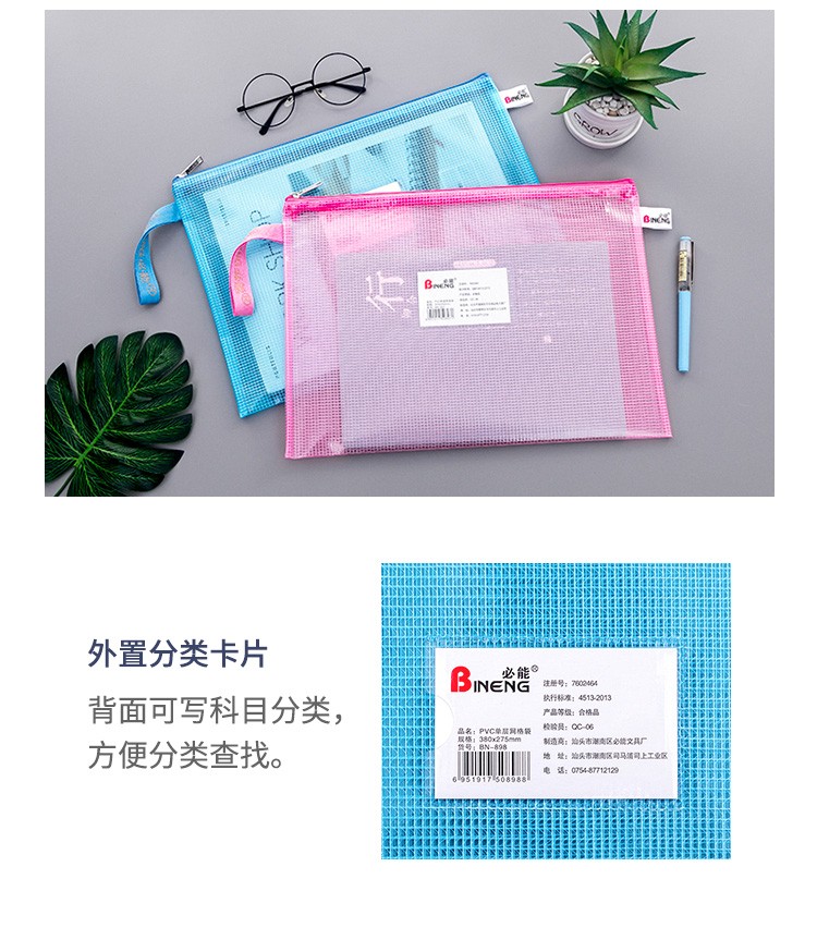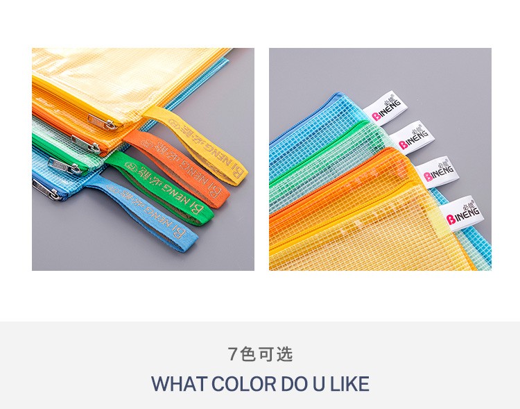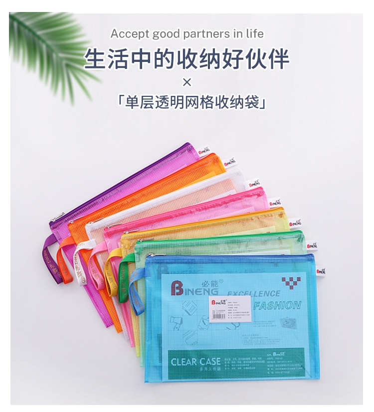 必能(BINENG)BN-897加厚A4防水網(wǎng)格拉鏈袋辦公文件袋資料收納袋學(xué)生文具袋 顏色隨機(jī)