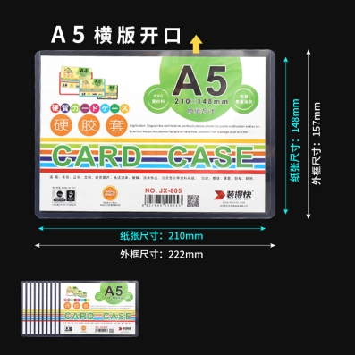 巨欣 JX-805 裝得快A5硬膠套PVC透明硬卡套保護(hù)套文件套 橫口