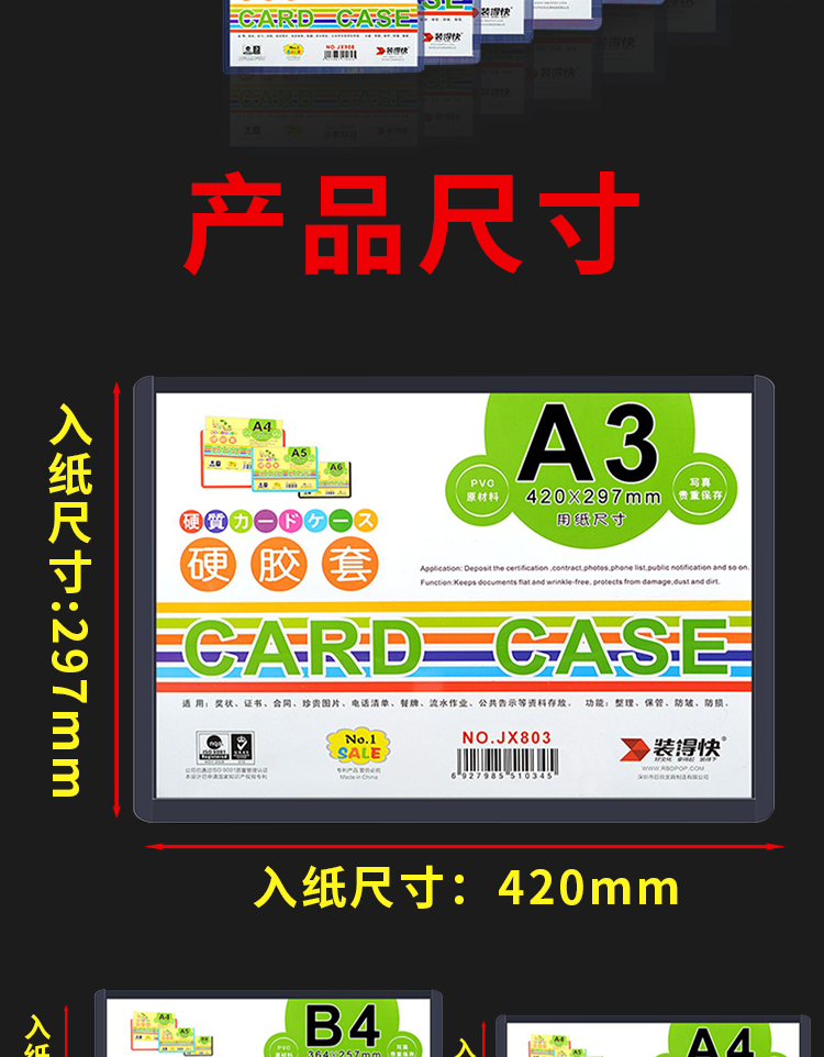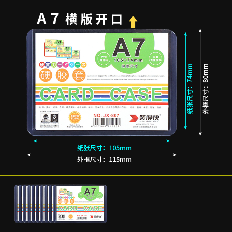 巨欣 JX-807 裝得快A7硬膠套PVC透明硬卡套保護(hù)套文件套 橫口