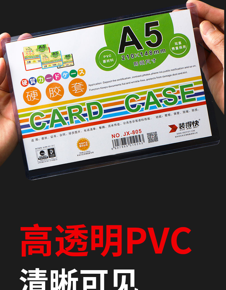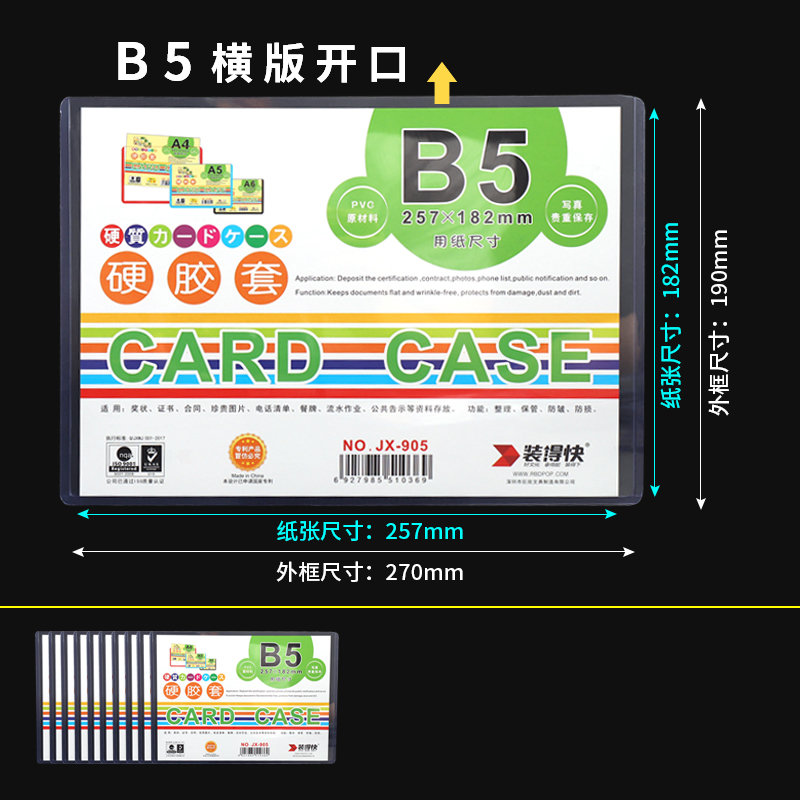 巨欣 JX-905 裝得快B5硬膠套PVC透明硬卡套保護套文件套 橫口