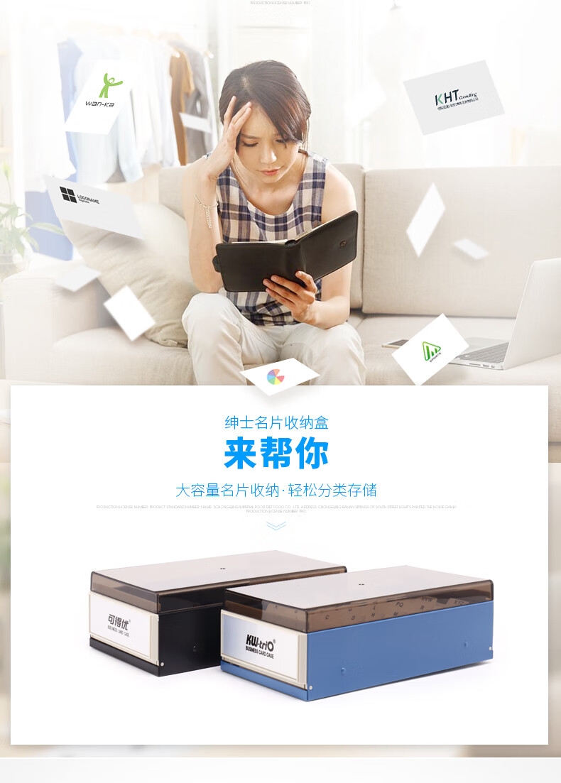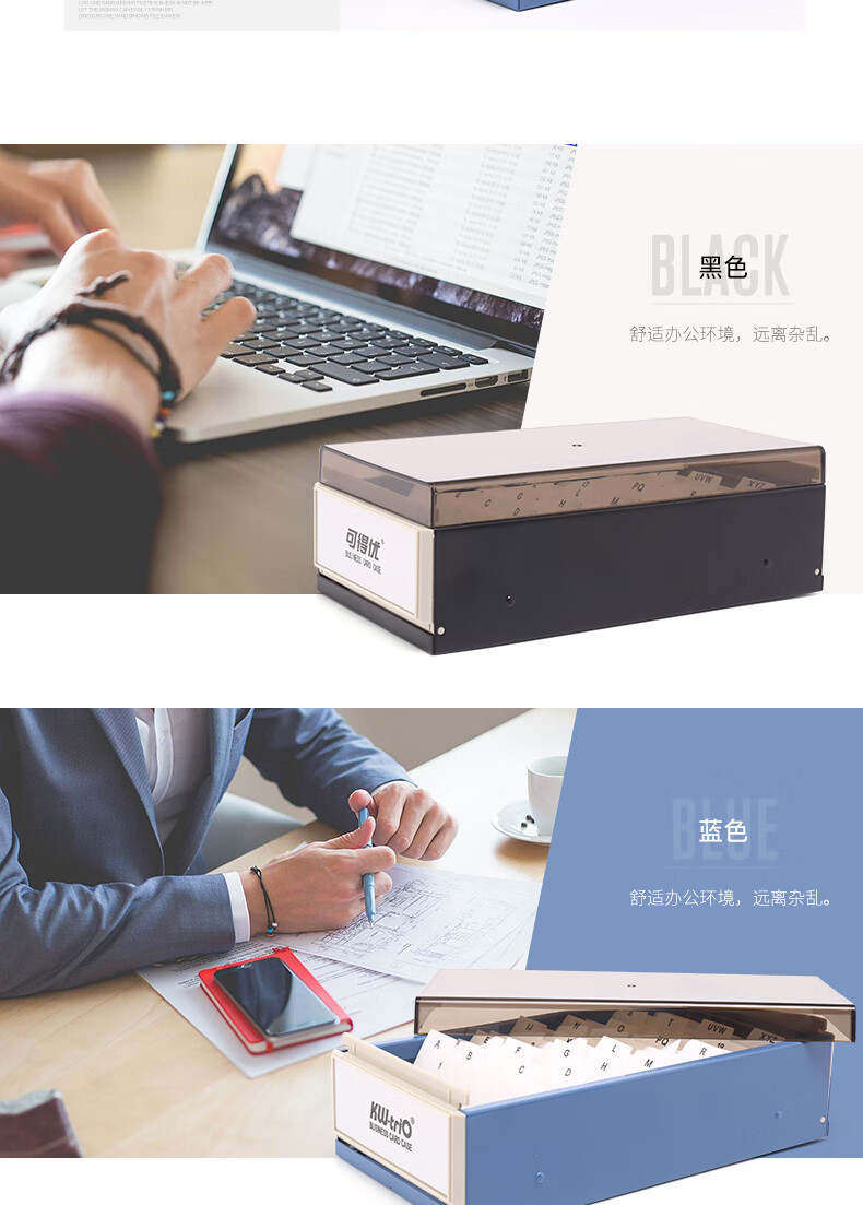 可得優(yōu)(KW-triO) 金屬盒身大容量名片盒翻蓋名片收納盒商務(wù)名片收藏盒A-Z按字母分類 4601黑色【600頁】