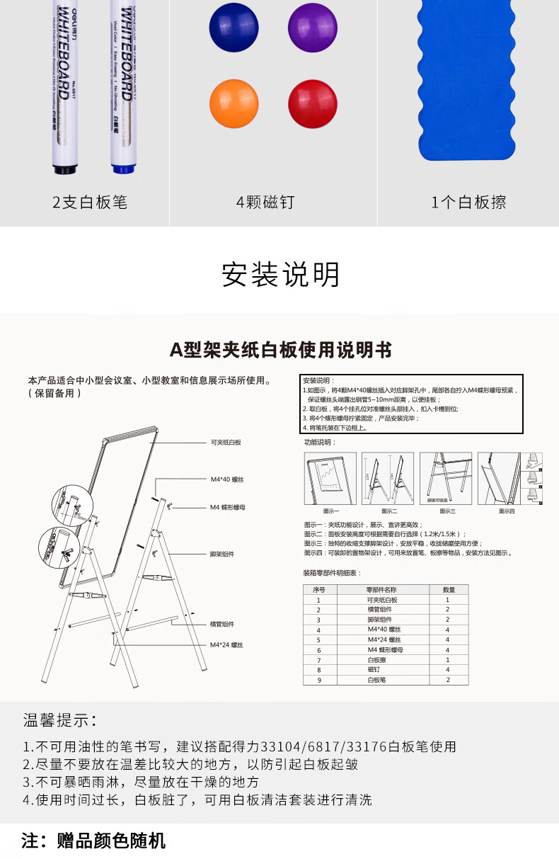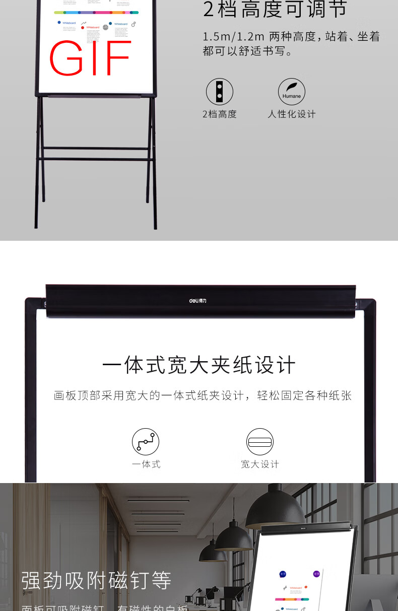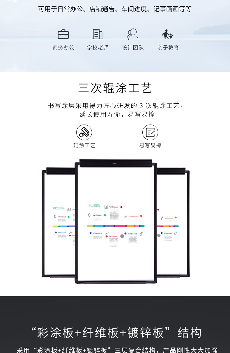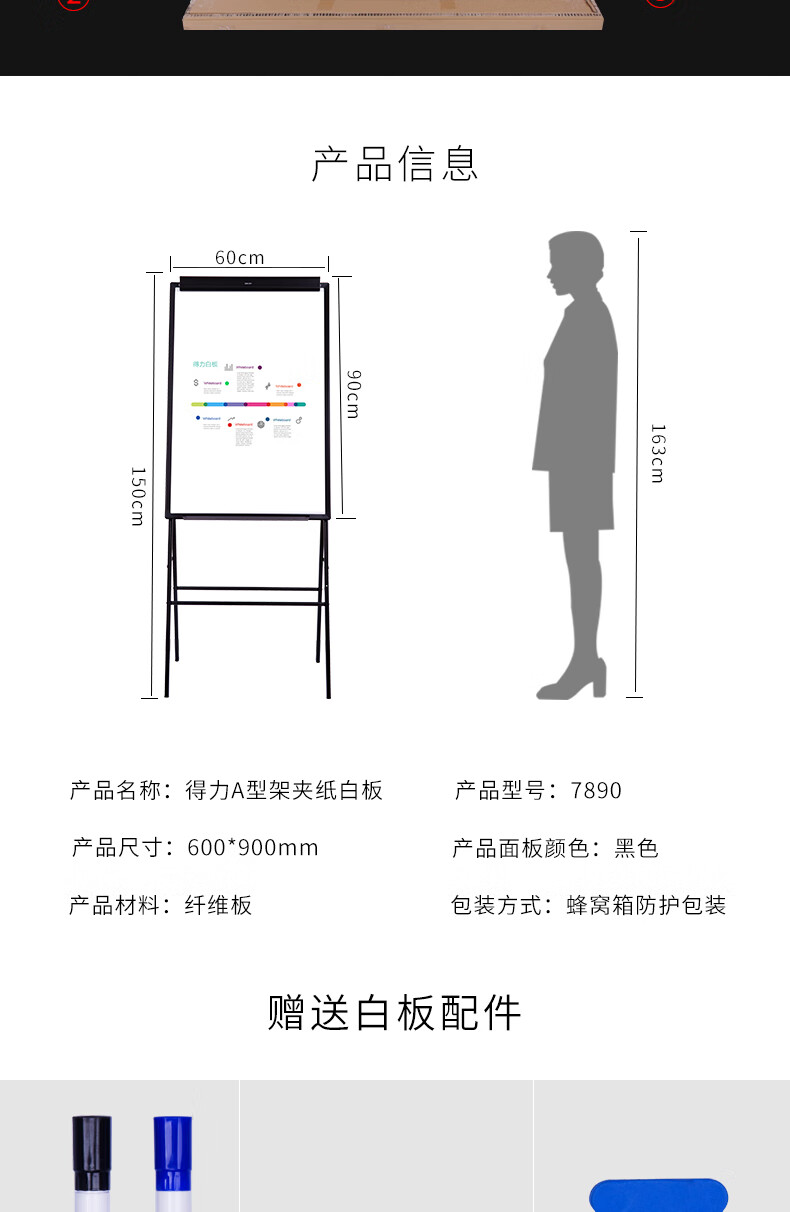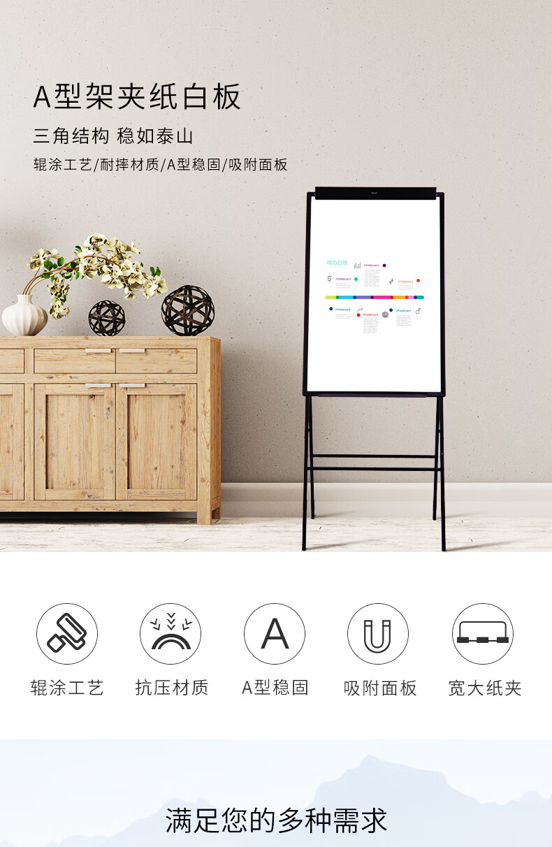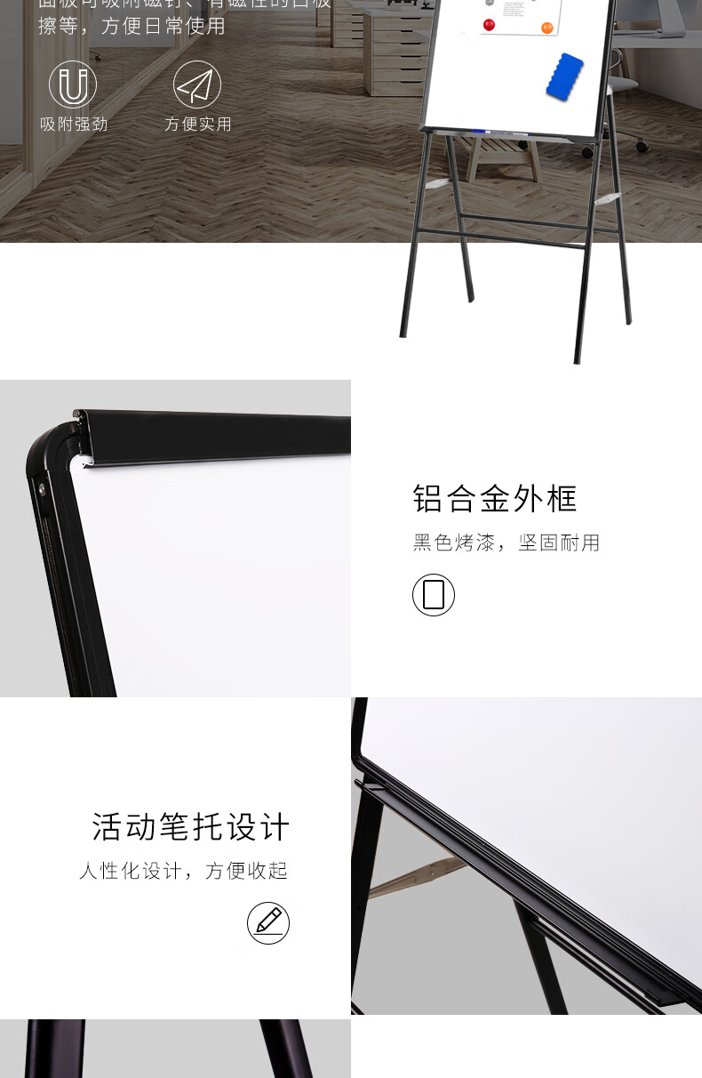 得力(deli) 支架白板 可移動可翻轉(zhuǎn)磁性辦公會議白板 寫字板 7890 A型磁性可夾紙白板90*60cm