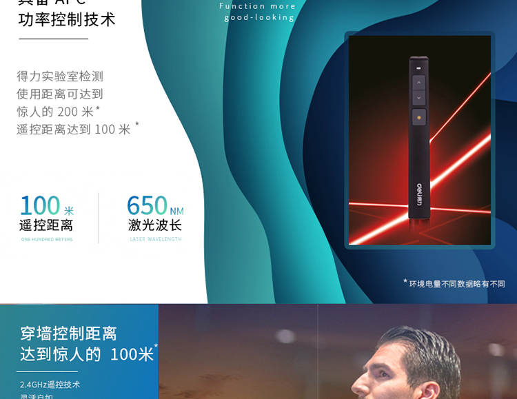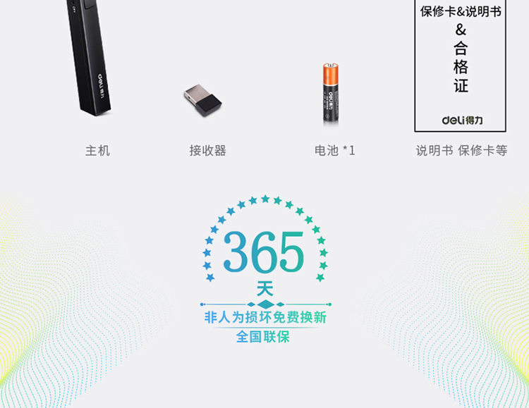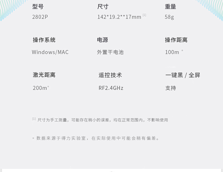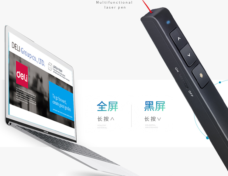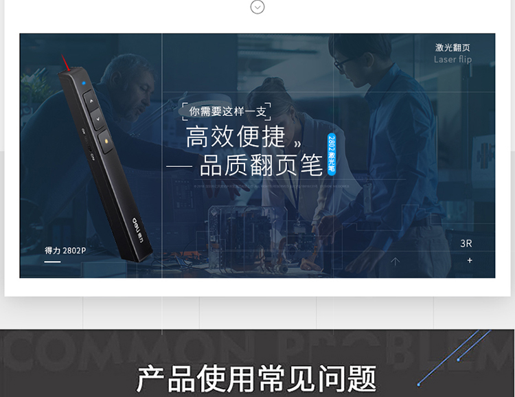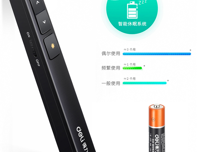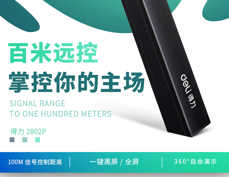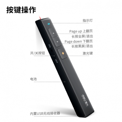 得力(deli)激光筆 百米遠(yuǎn)控翻頁筆電子筆演講筆 PPT翻頁筆 投影筆激光筆教鞭 無線演示翻頁器 紅光 黑色2802P 電池款