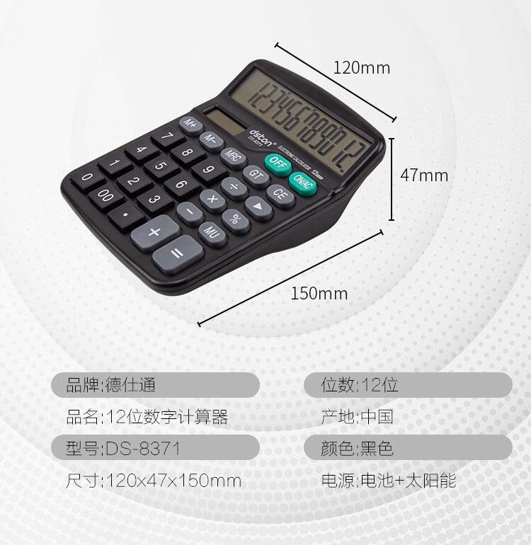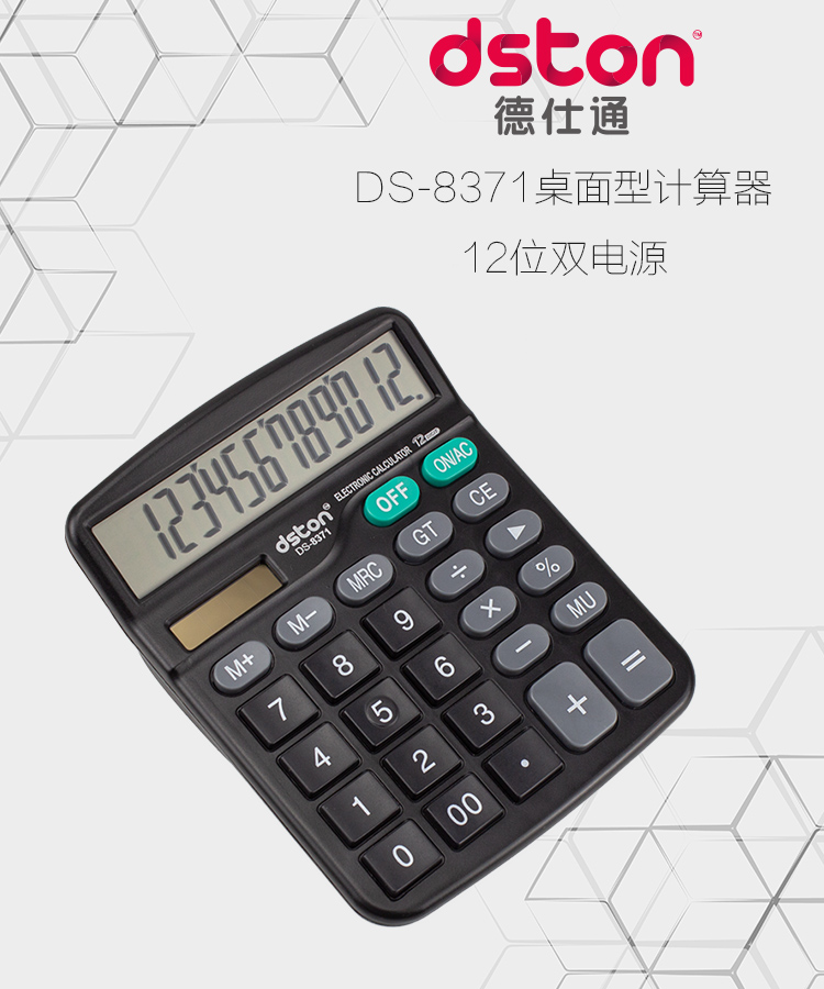 德仕通(dston)辦公計算器 桌面型雙電源 12位顯示辦公用品財務用品 DS-8371
