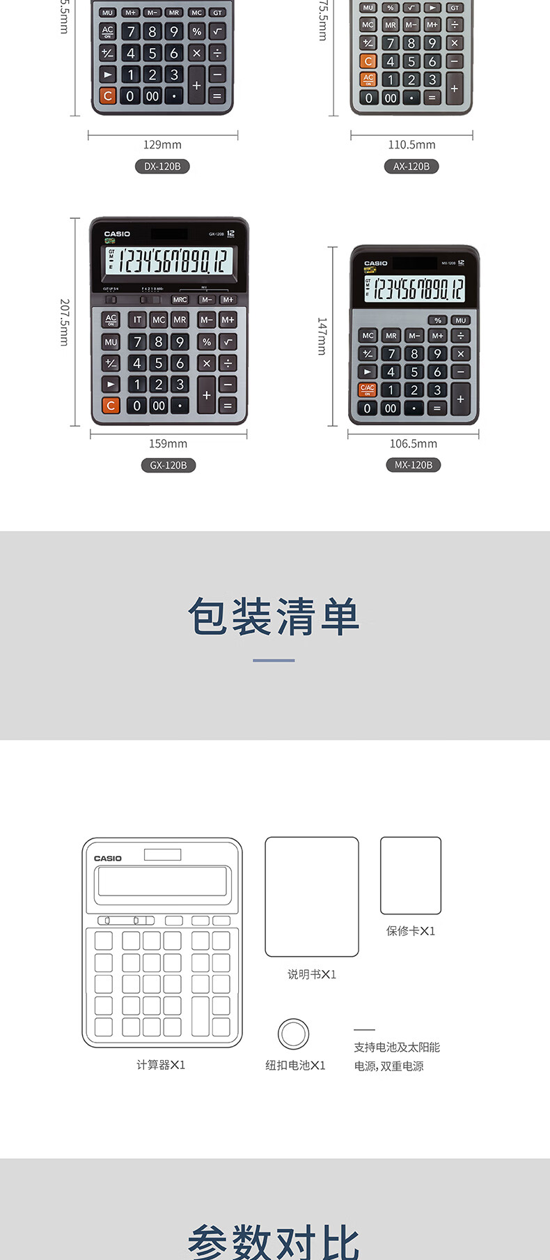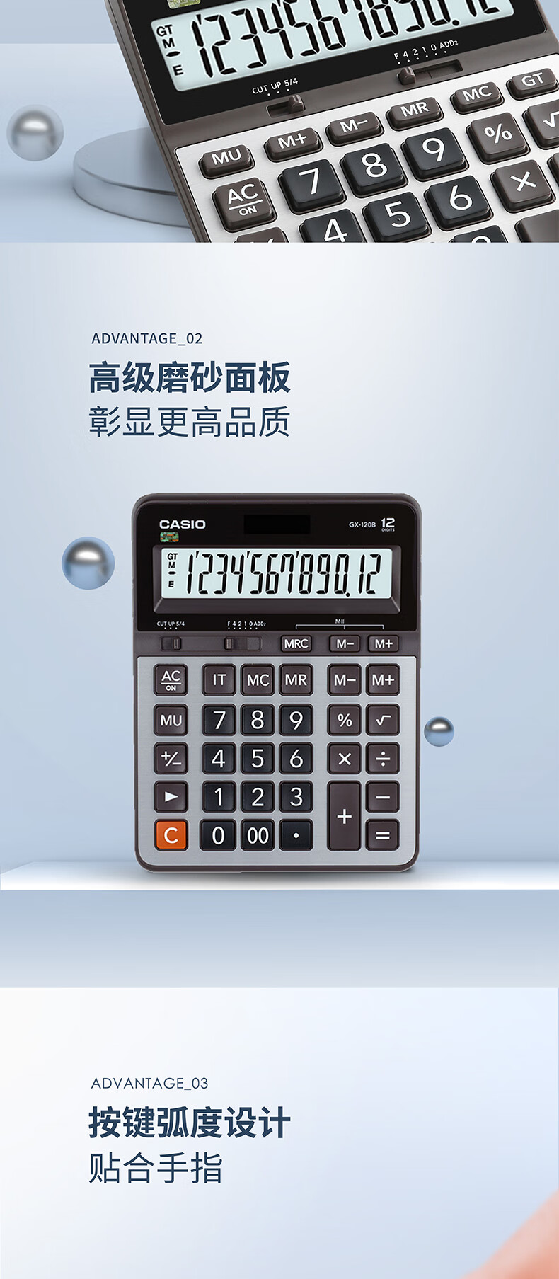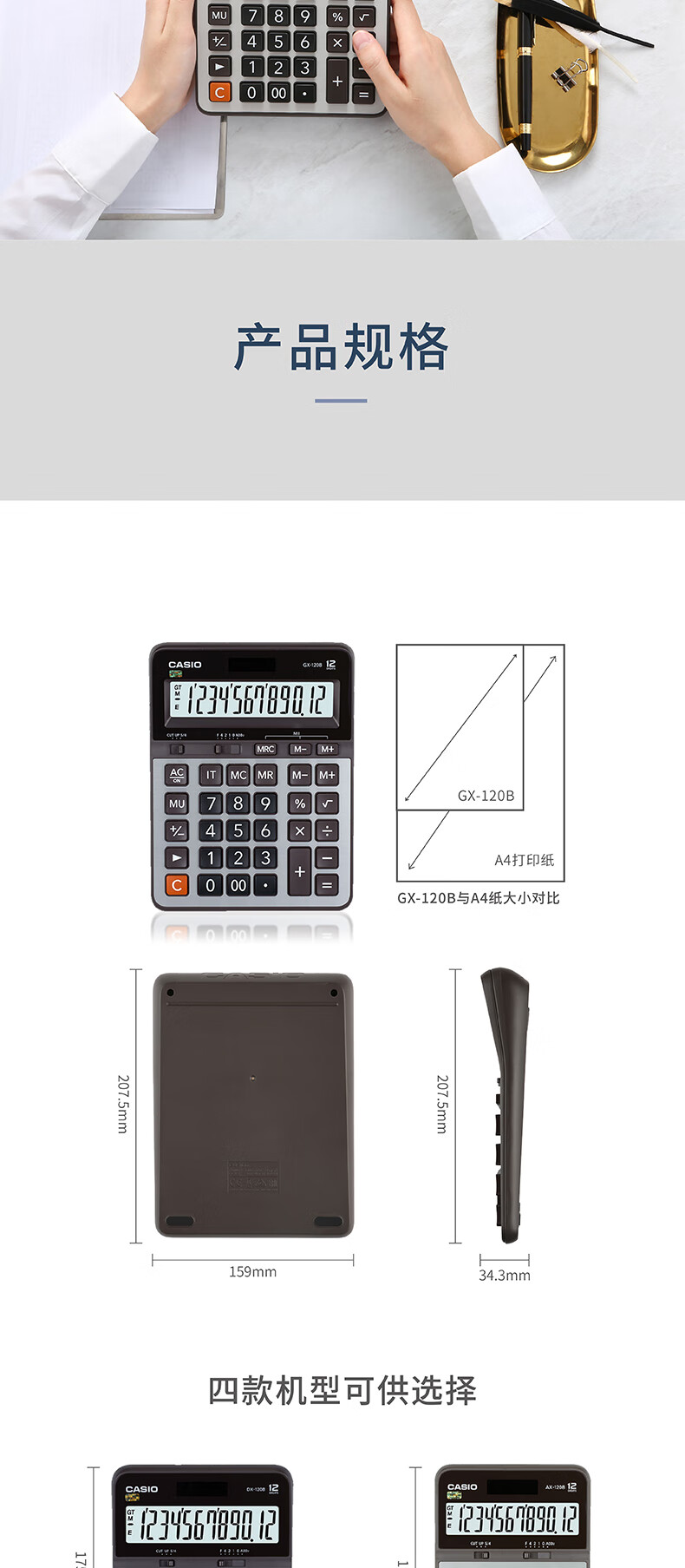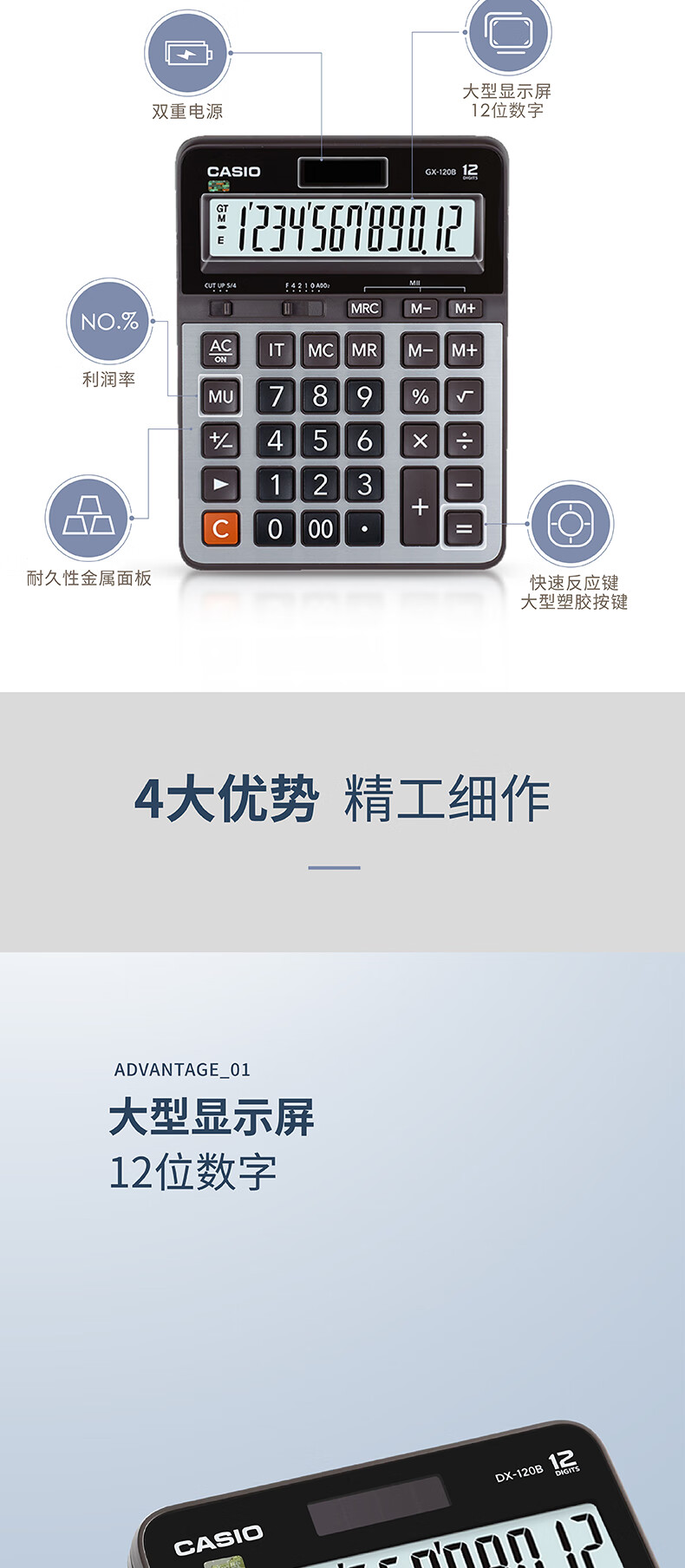 卡西歐(CASIO)雙重電源GX-120B商務(wù)計(jì)算器超大型機(jī)辦公用品灰色GX-120S升級(jí)款
