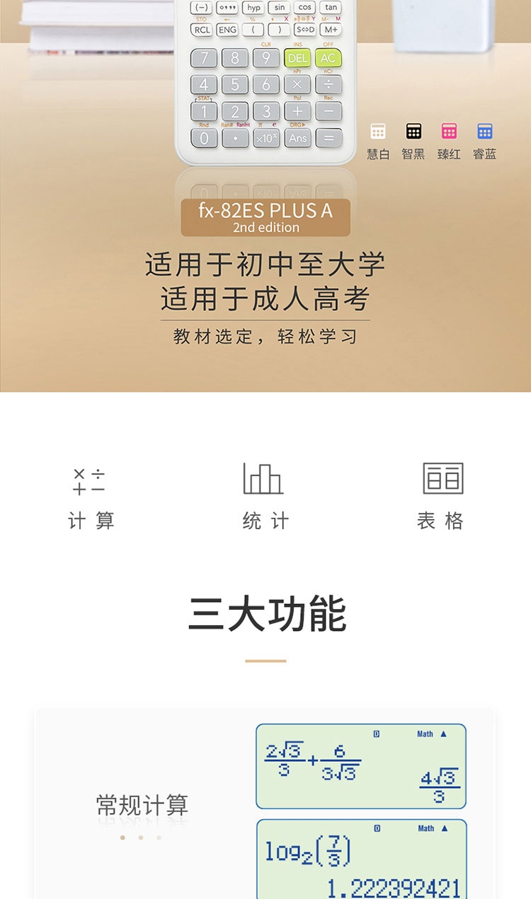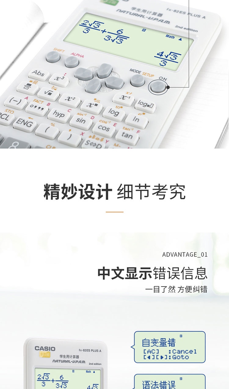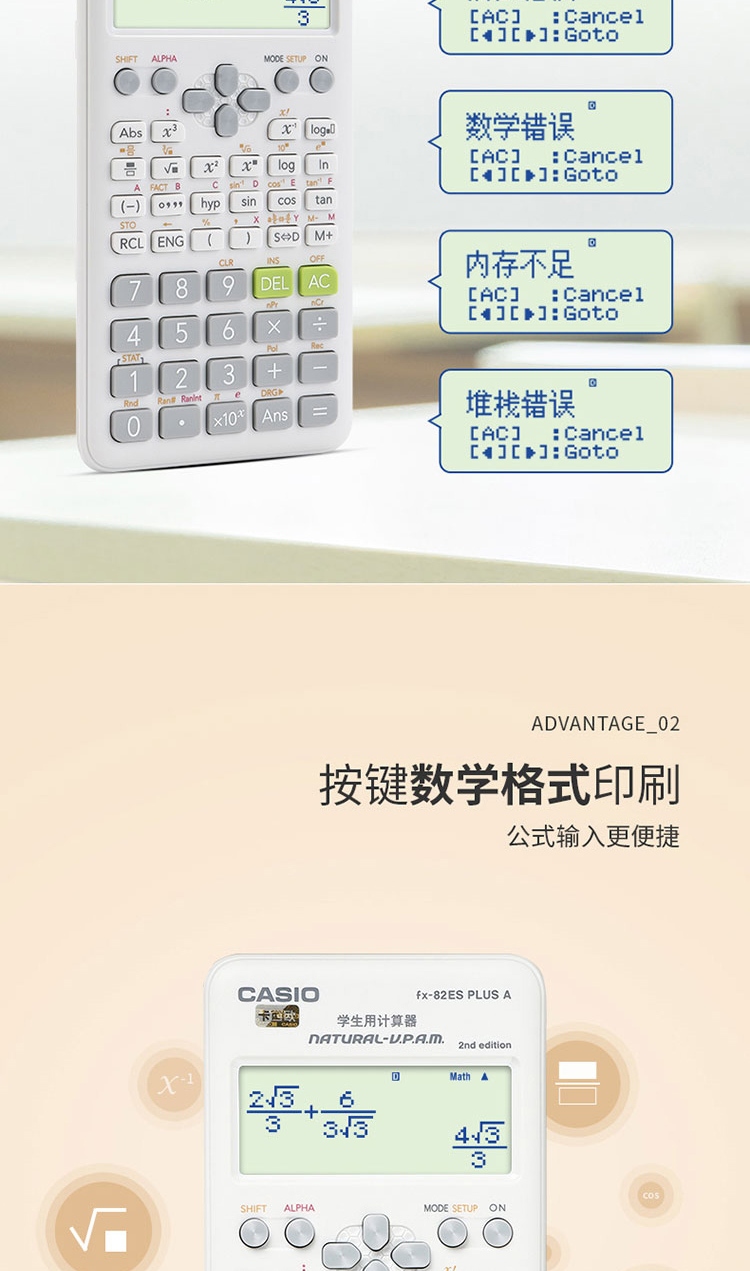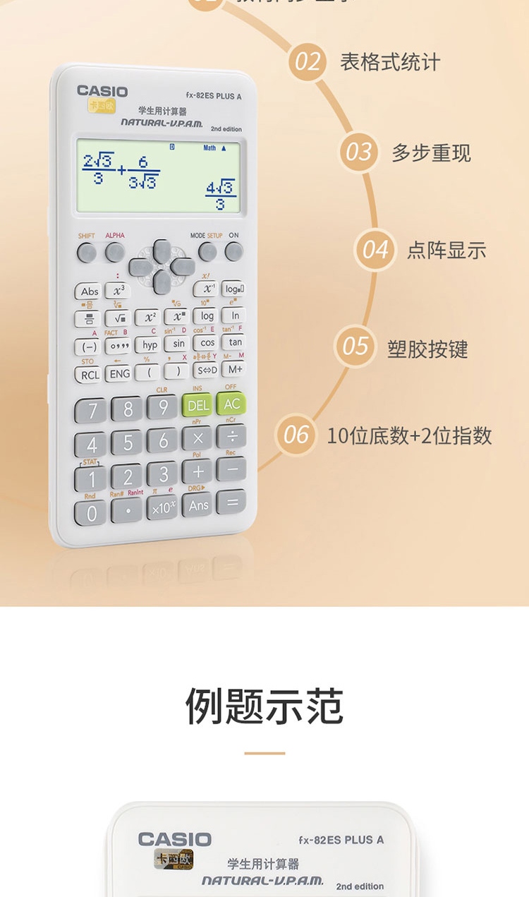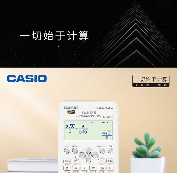 卡西歐(CASIO) FX-82ES PLUS A - 2 函數(shù)科學(xué)計算器 智黑 fx-82ES PLUS A 升級款 大學(xué)高中初中學(xué)生考試