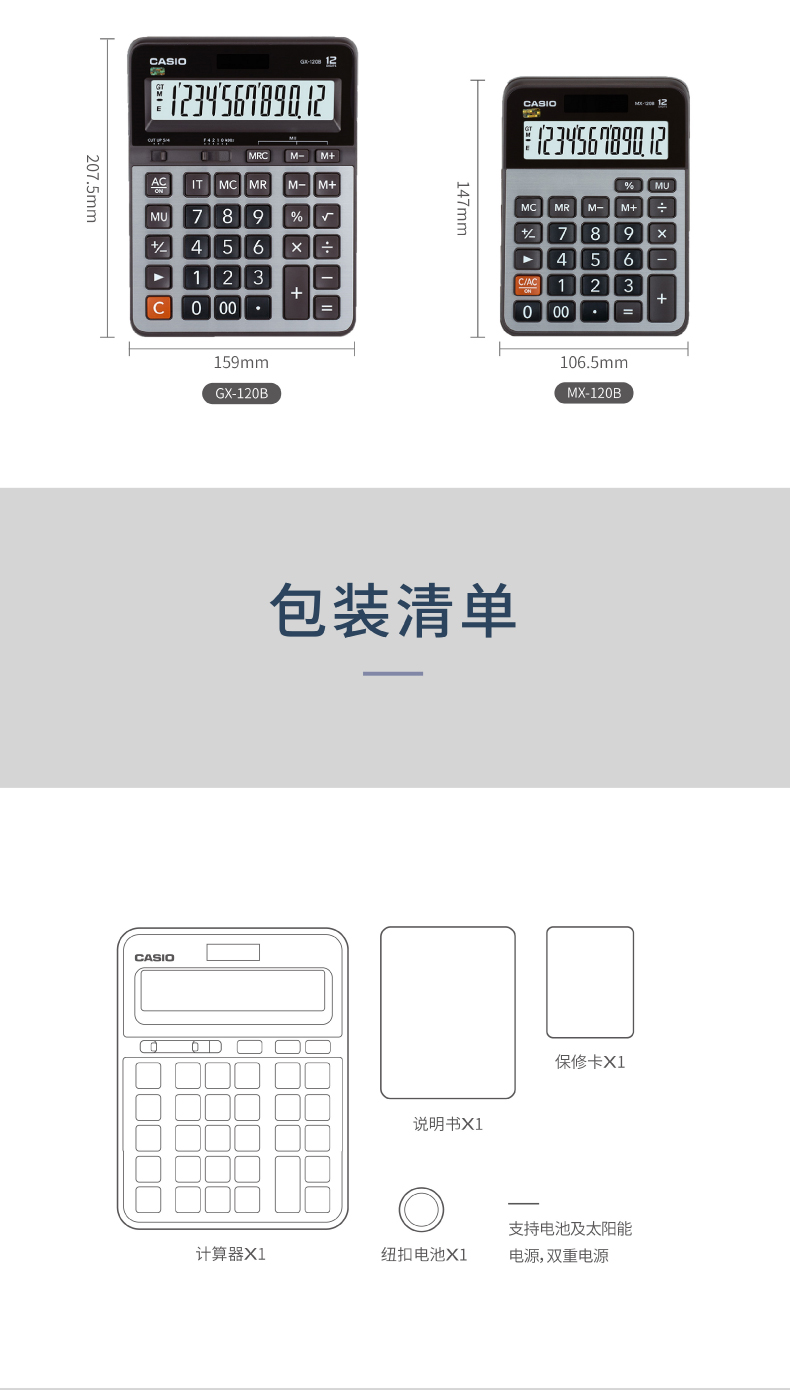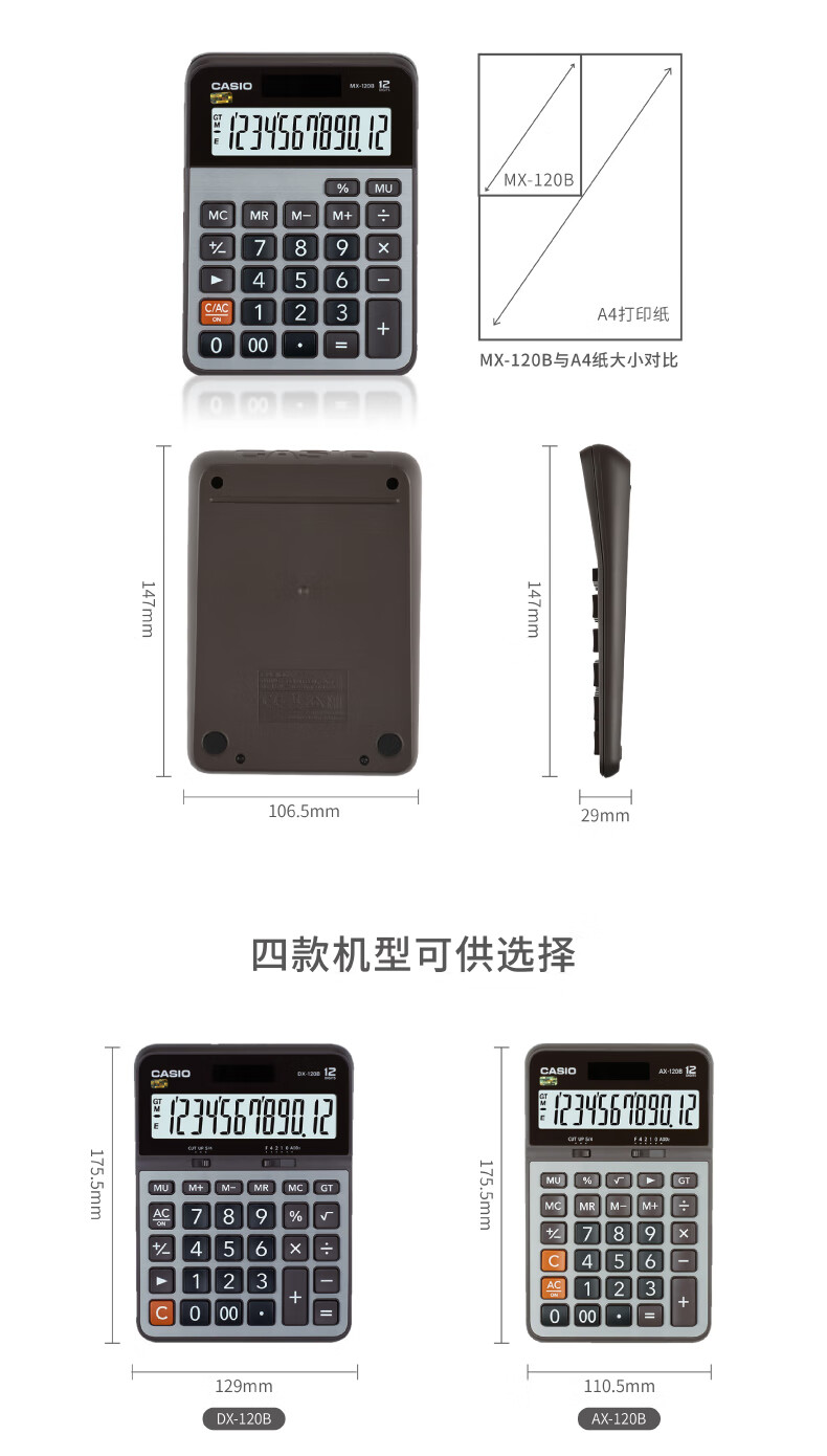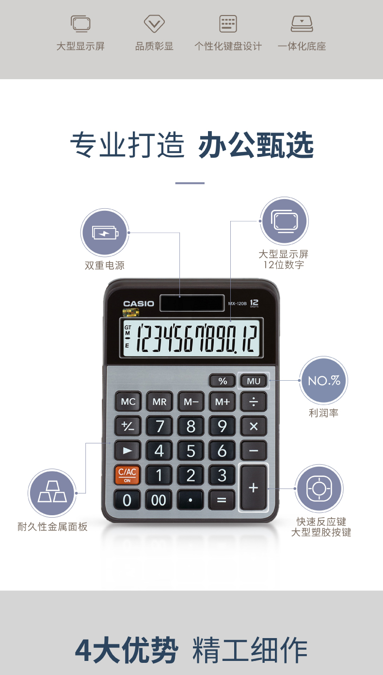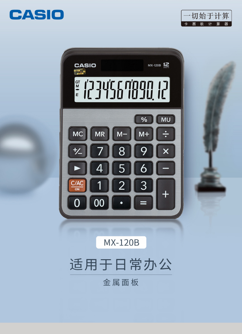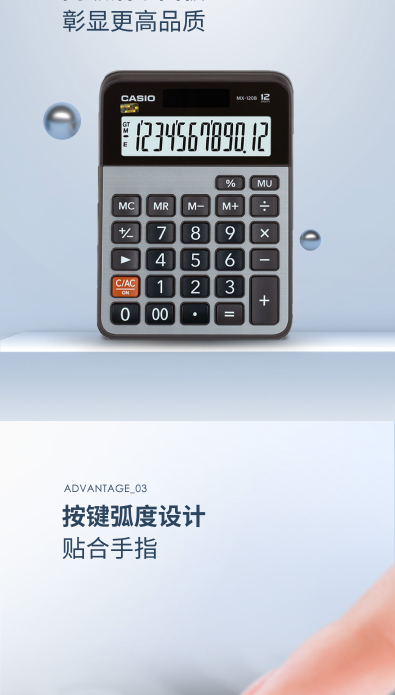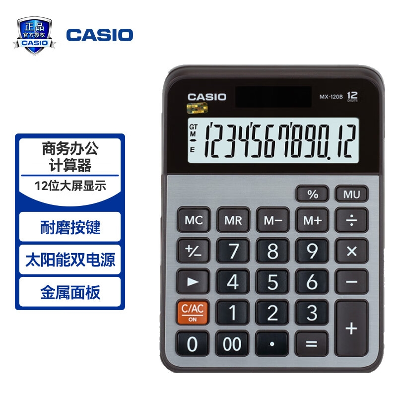 卡西歐(CASIO)MX-120B 商務(wù)計(jì)算器 小型機(jī) 灰色 商用
