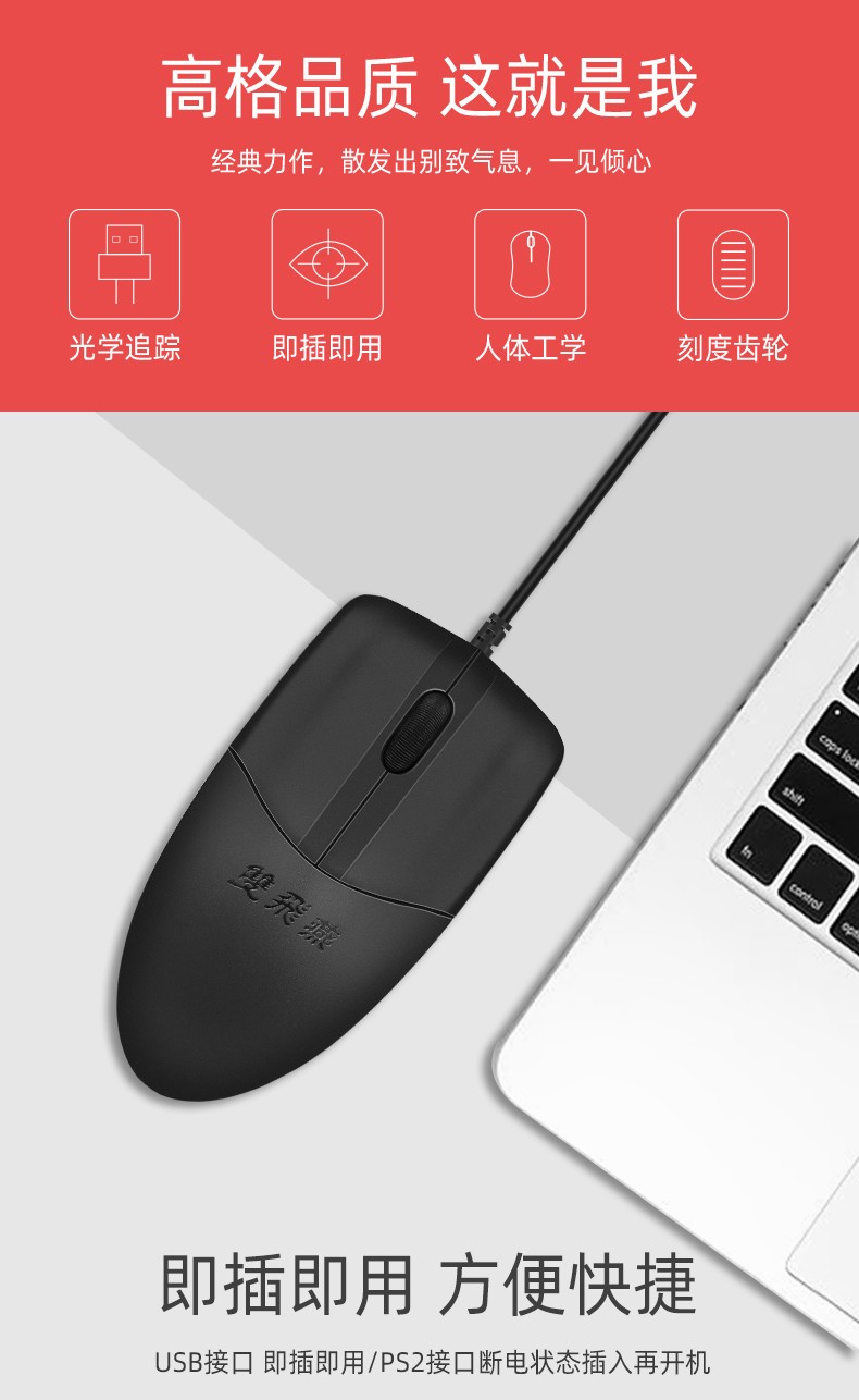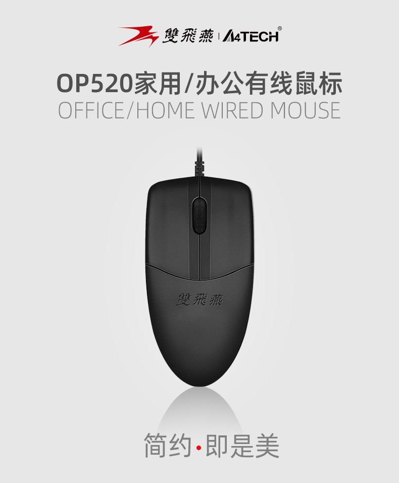 雙飛燕(A4TECH) OP-520NU 鼠標(biāo) 有線鼠標(biāo) 辦公鼠標(biāo) 便攜鼠標(biāo) 對稱鼠標(biāo) 黑色 PS/2接口