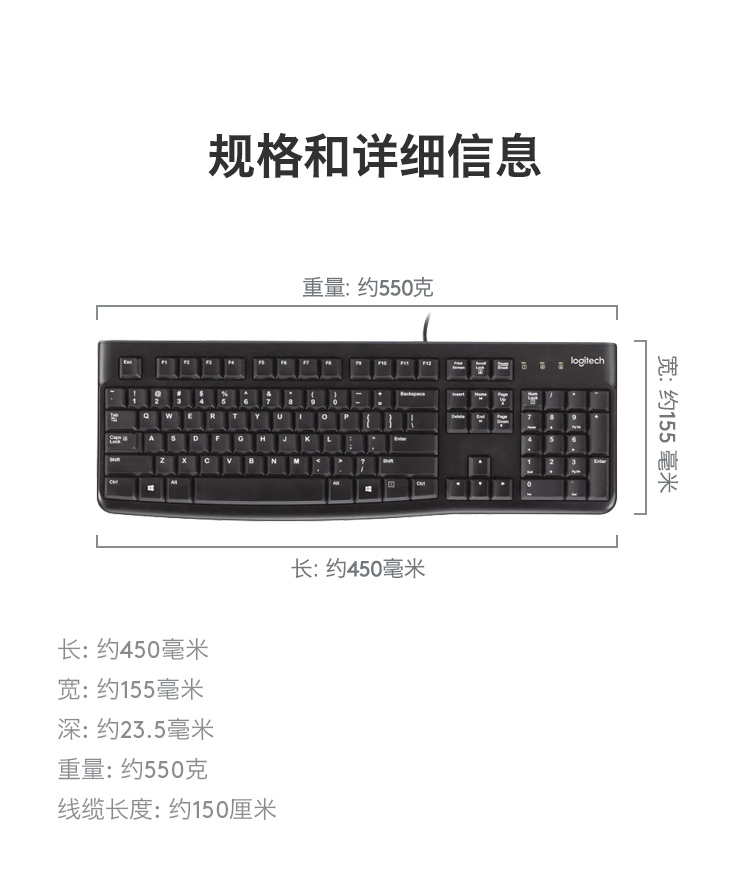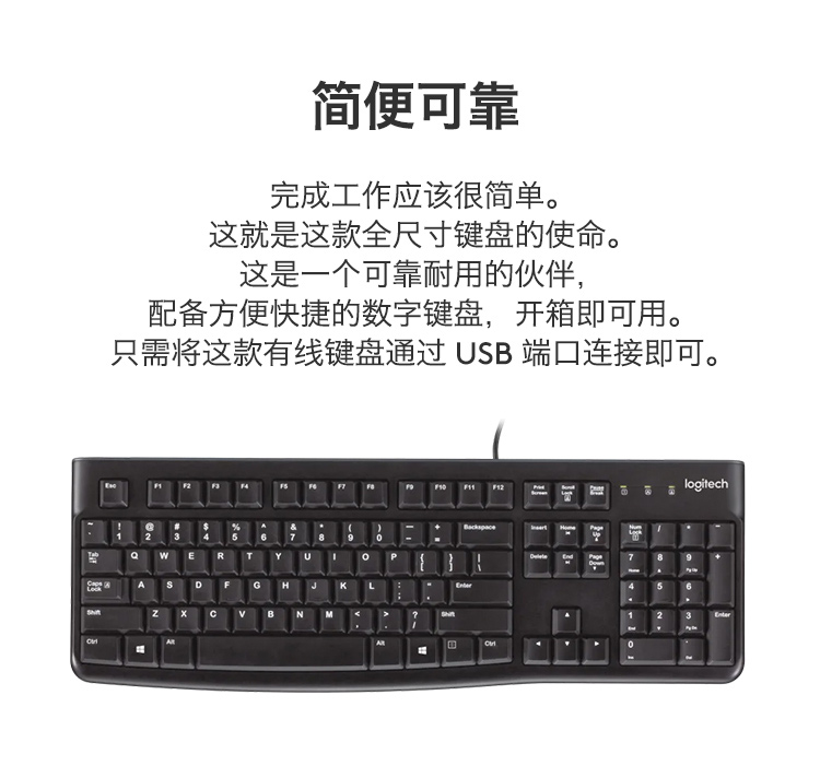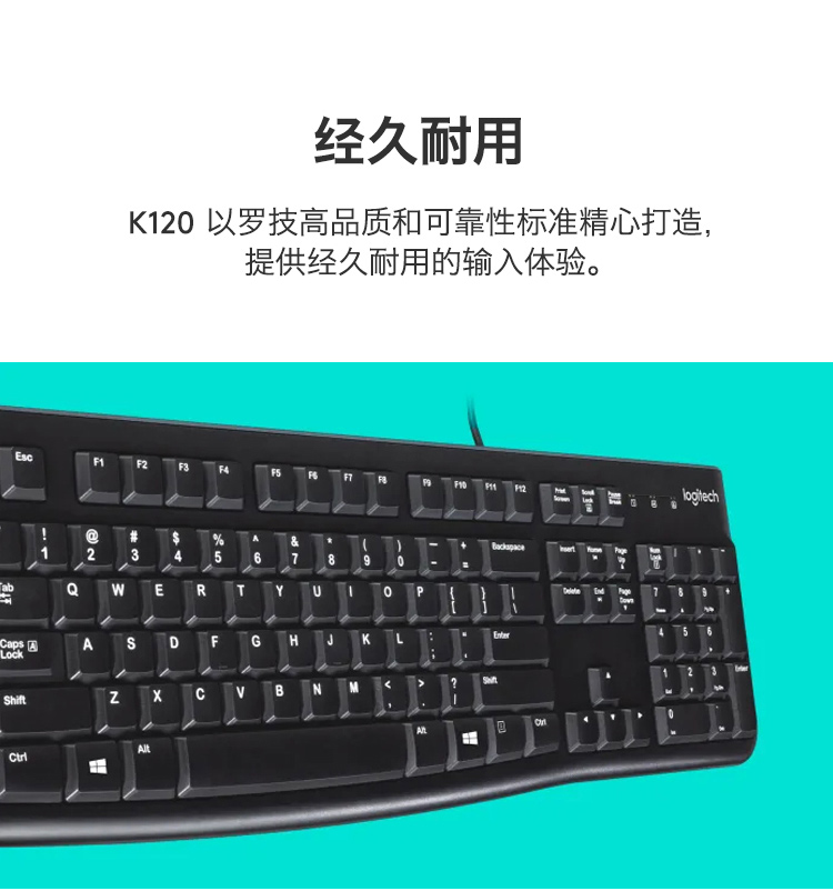 羅技(Logitech)K120 鍵盤 有線鍵盤 辦公鍵盤 全尺寸 黑色U口