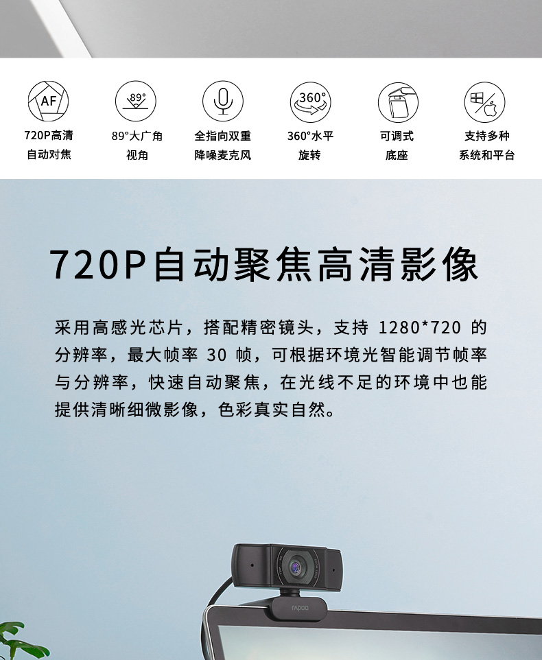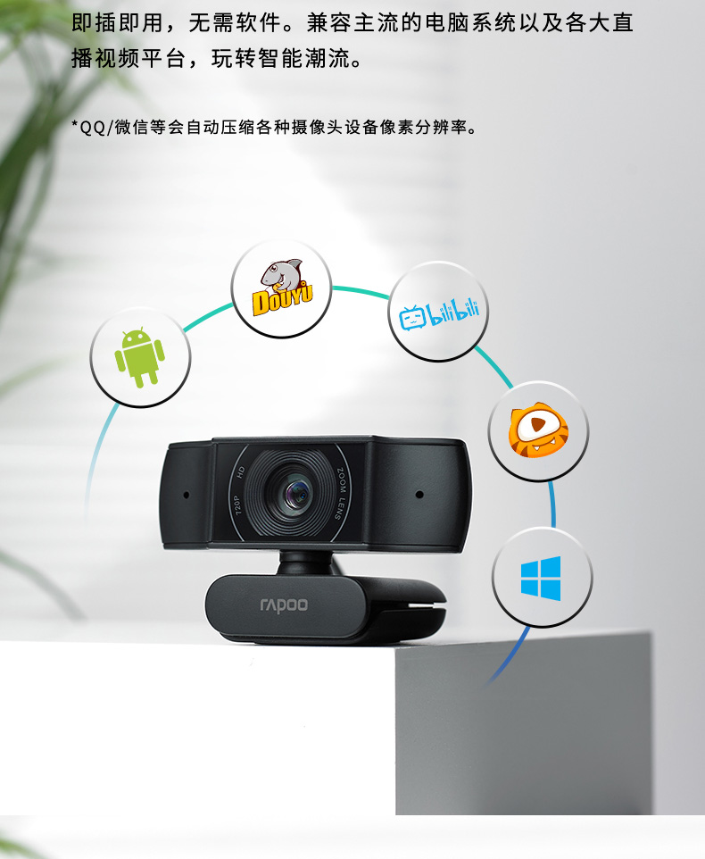 雷柏C200usb外置攝像頭高清帶麥克風(fēng)電腦臺(tái)式筆記本復(fù)試網(wǎng)課專用