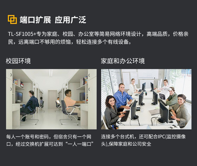 P-LINK 5口百兆4口監(jiān)控網(wǎng)絡(luò)網(wǎng)線分線器 家用宿舍分流器 TL-SF1005+