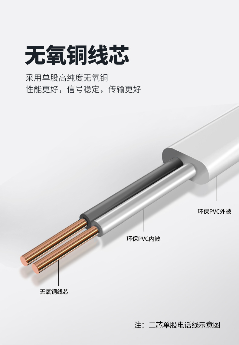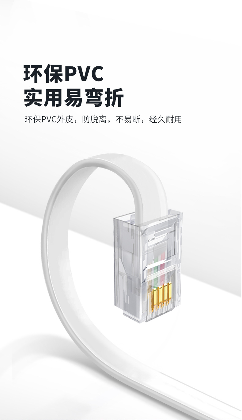 通用 座機(jī)電話線2芯4芯延長(zhǎng)線成品電話跳線四芯室外固話電話機(jī)連接線 3米