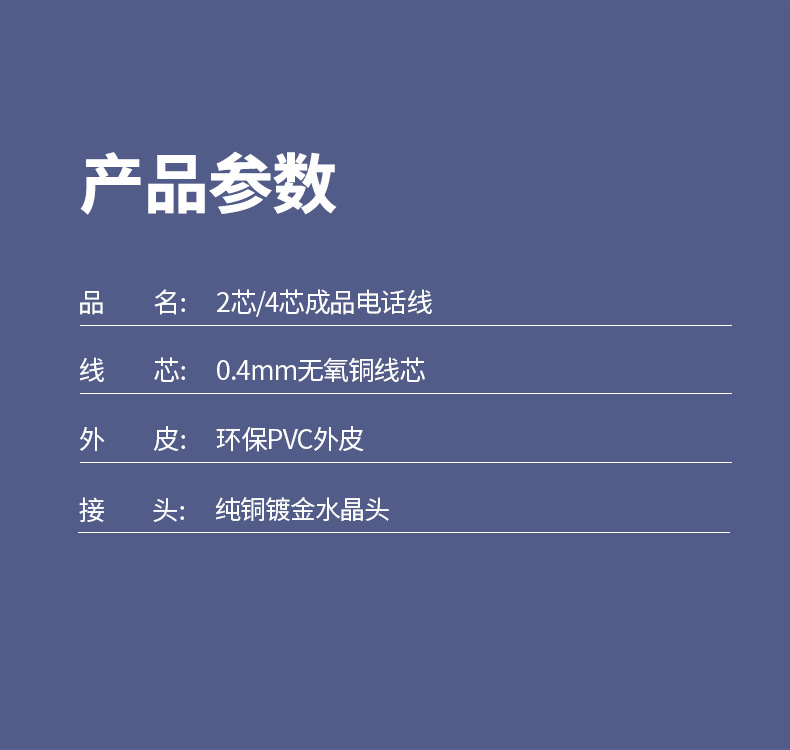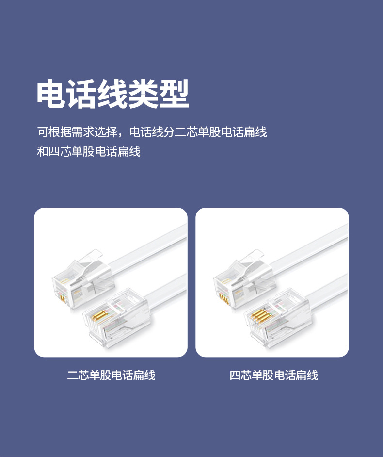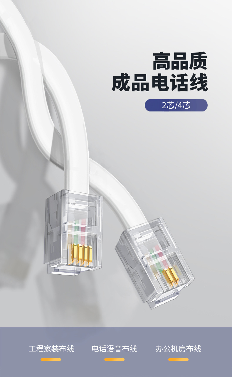 通用 座機電話線2芯4芯延長線成品電話跳線四芯室外固話電話機連接線 5米