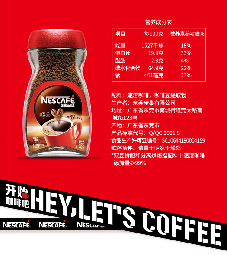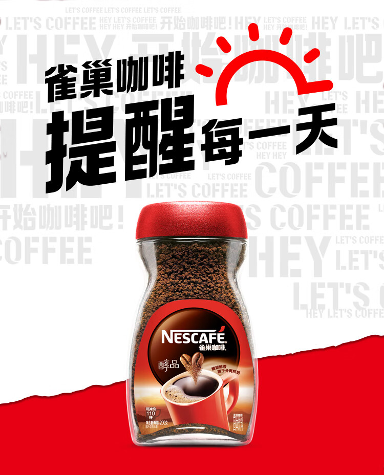 雀巢(Nestle)醇品 黑咖啡速溶 0糖0脂 美式咖啡粉 瓶裝200g