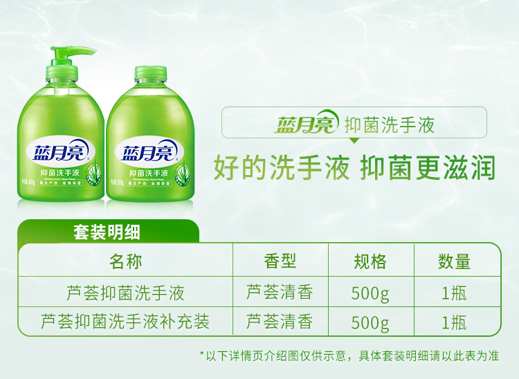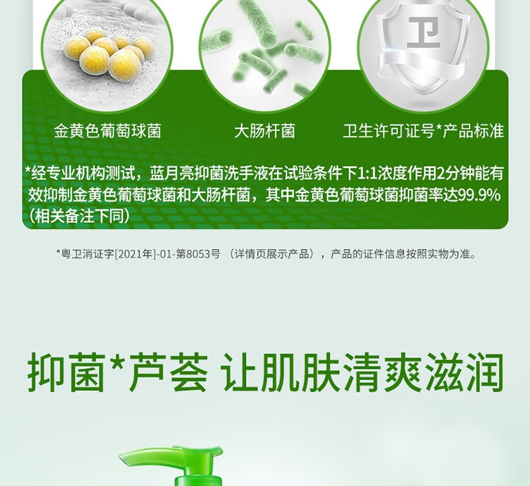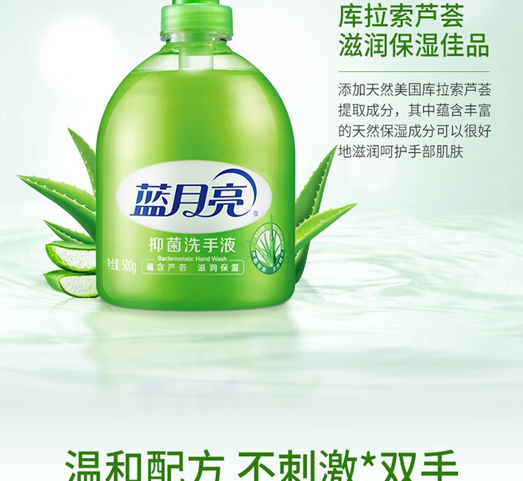 藍(lán)月亮 蘆薈抑菌洗手液500g瓶 清潔抑菌99.9% 泡沫豐富 易沖洗