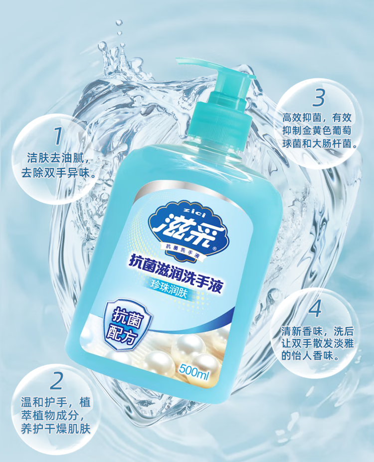滋采 洗手液蘆薈長效殺菌消毒滋潤99.9%洗手液500ML