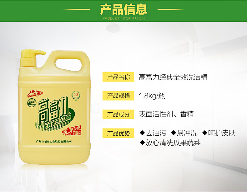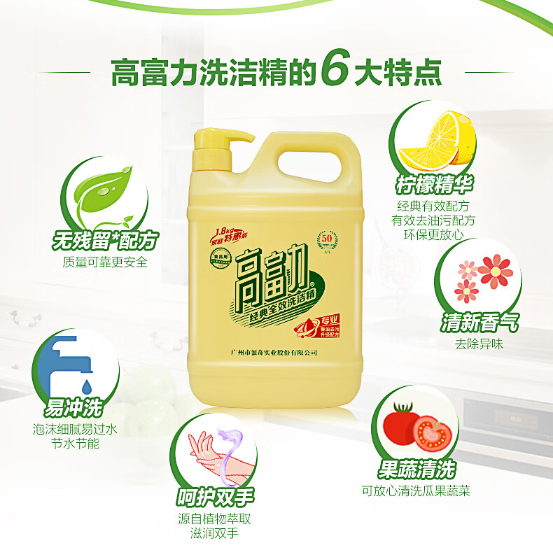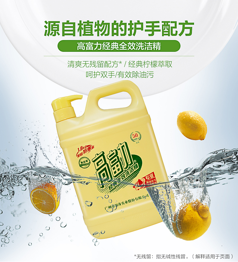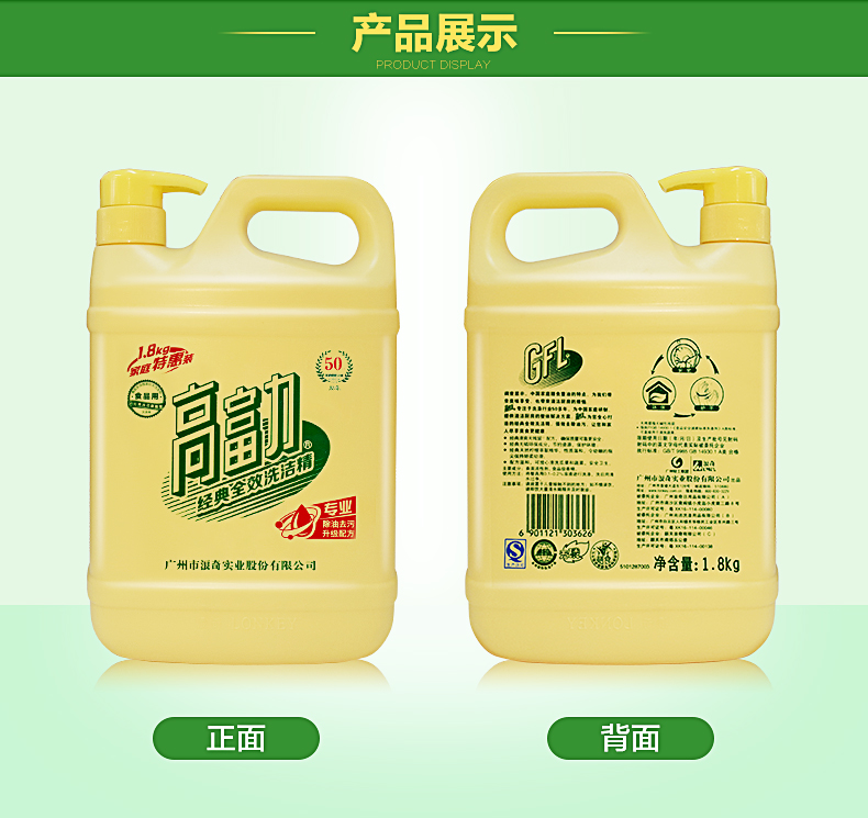LONKEY浪奇/高富力1.8kg經(jīng)典全效洗潔精家用食品級除菌去油污去腥味洗瓜果蔬