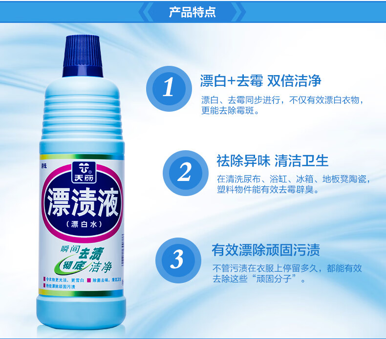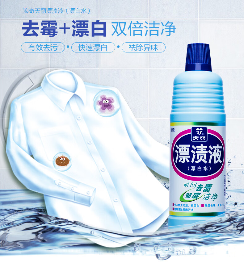 浪奇(Lonkey)天麗漂白水瓶裝漂漬液去漬潔凈增白色衣物多效清潔 600g