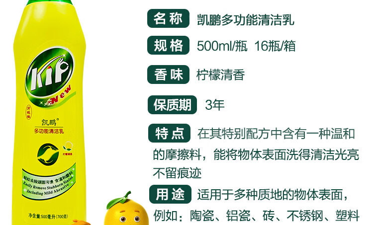 凱鵬 多功能清潔乳500ml 檸檬香 瓷磚清潔劑餐具油污地面污垢小白鞋清潔劑