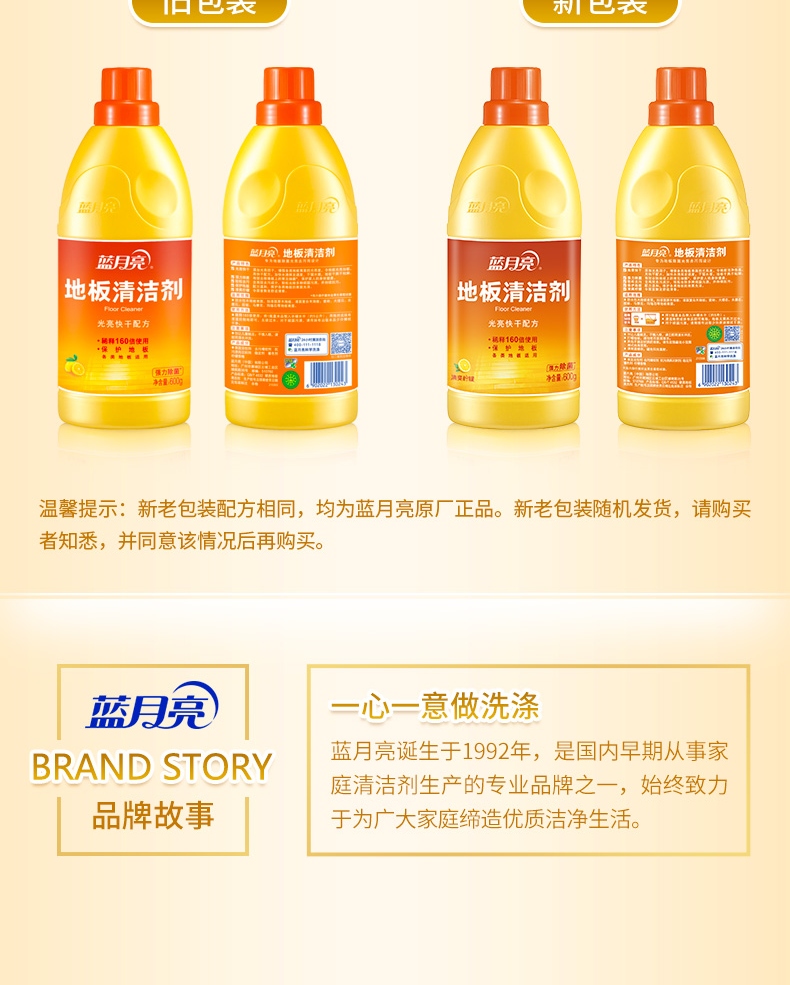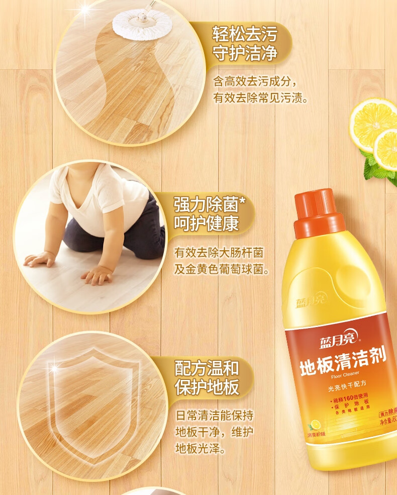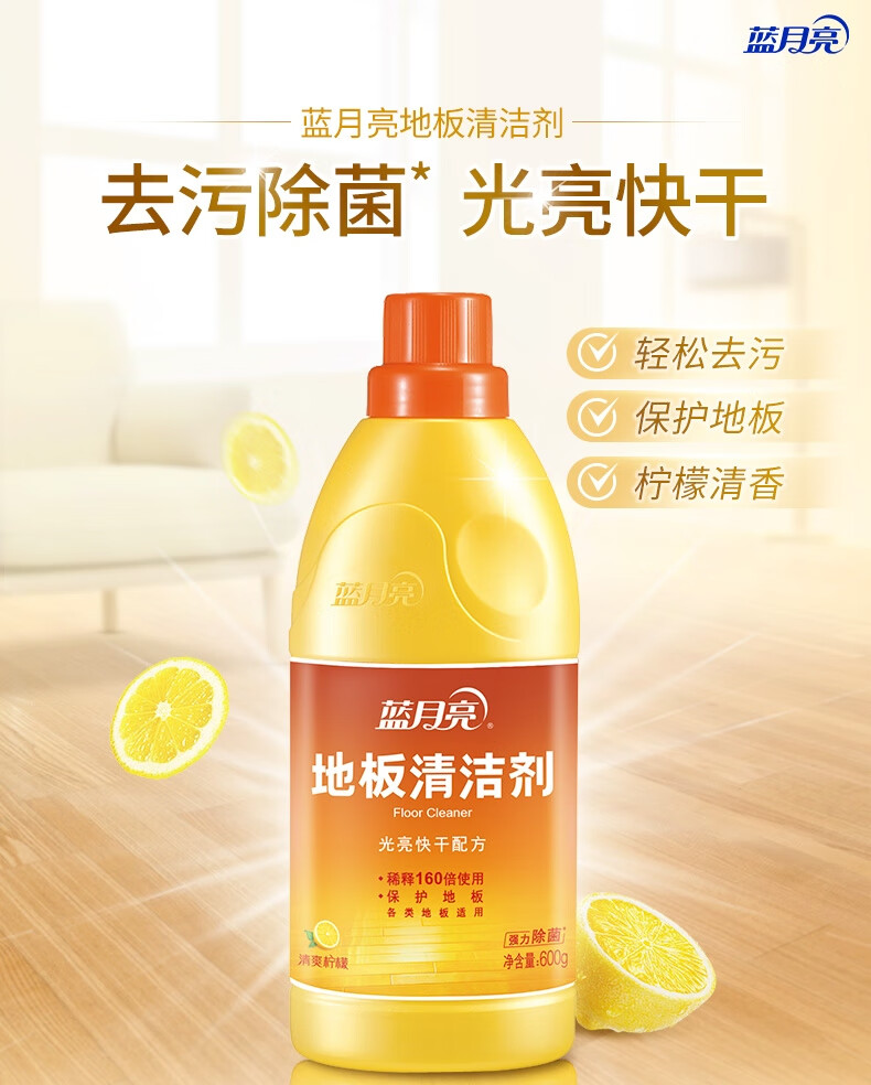藍(lán)月亮 地板清潔劑 600g/瓶 檸檬香 去污除菌 拖地清潔劑 瓷磚清潔劑