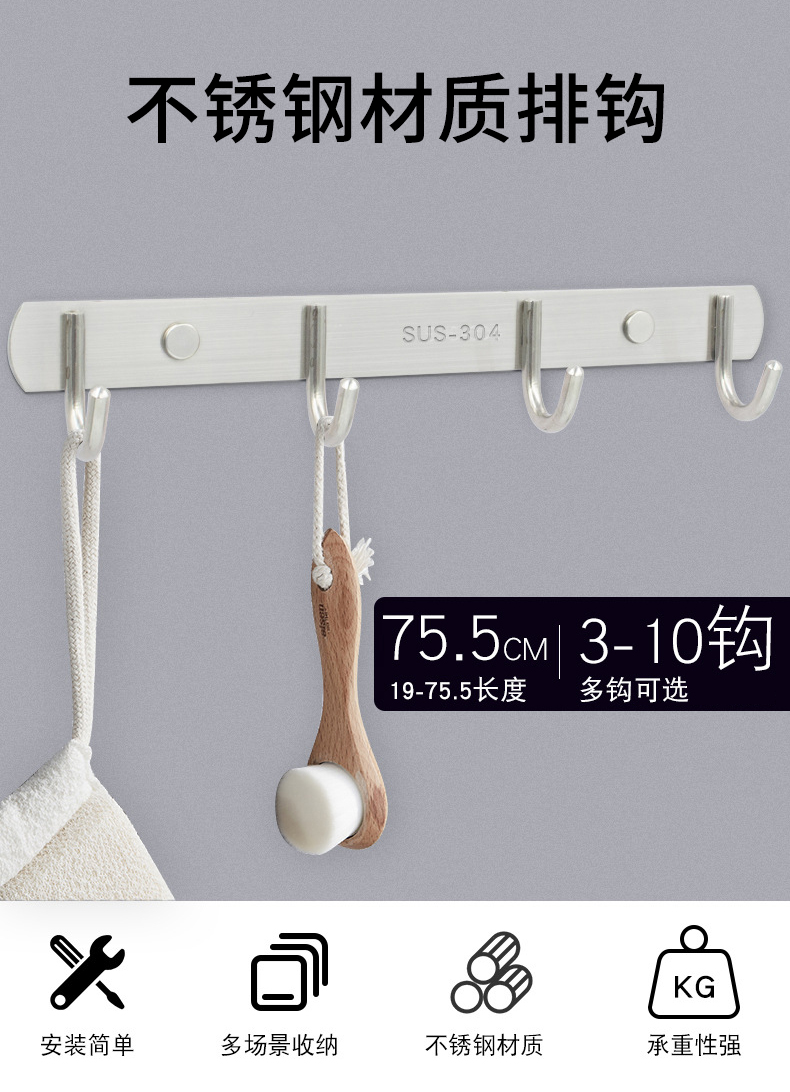 不銹鋼掛鉤衛(wèi)浴五金掛衣鉤排鉤 7鉤