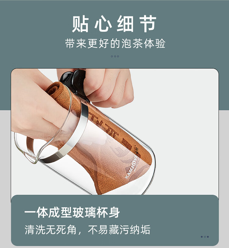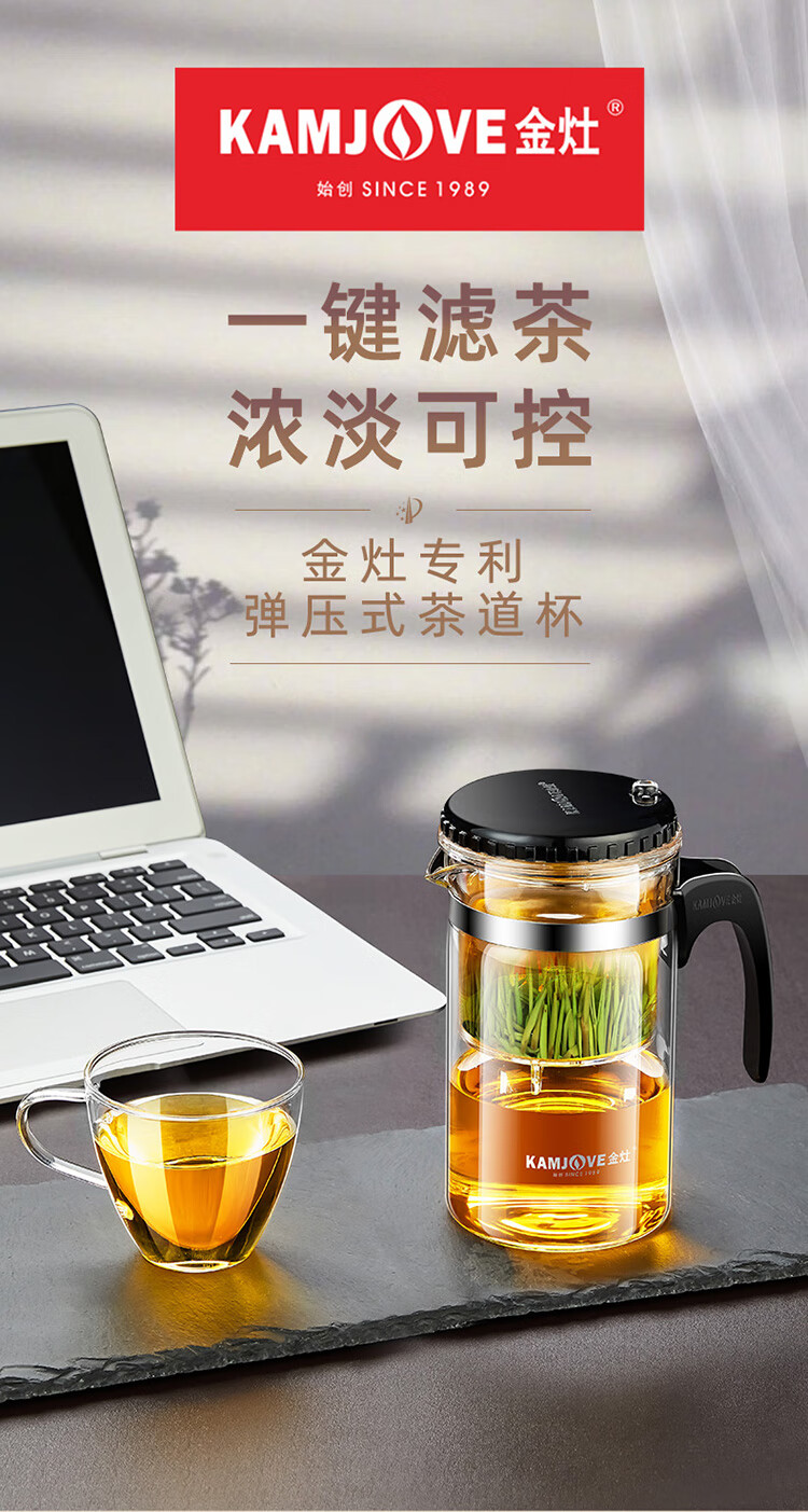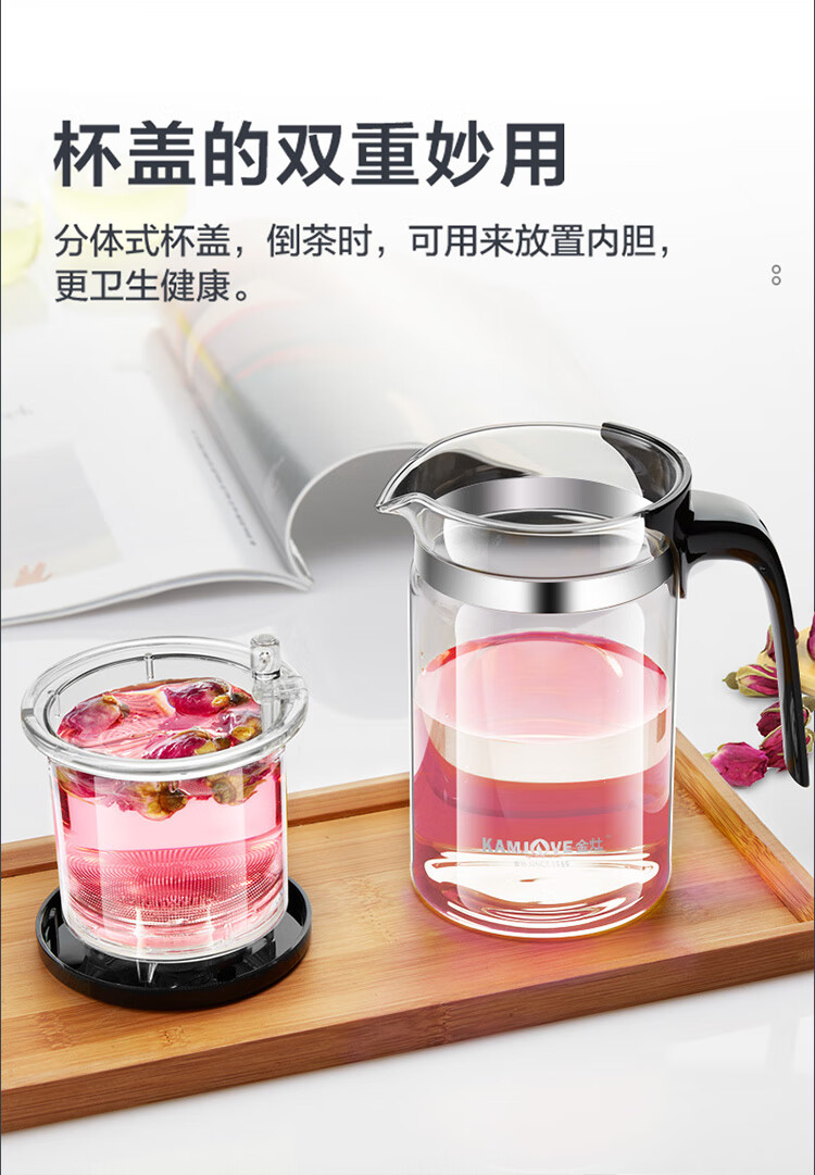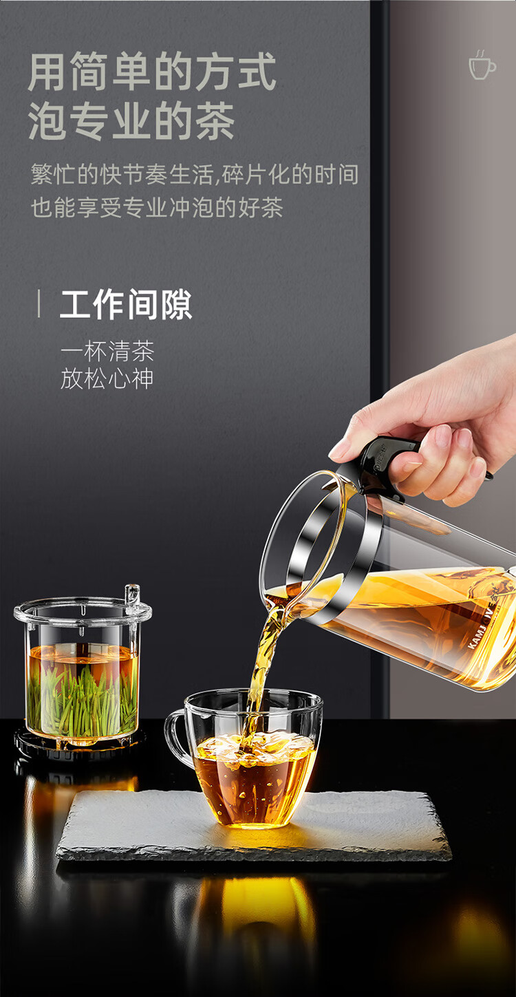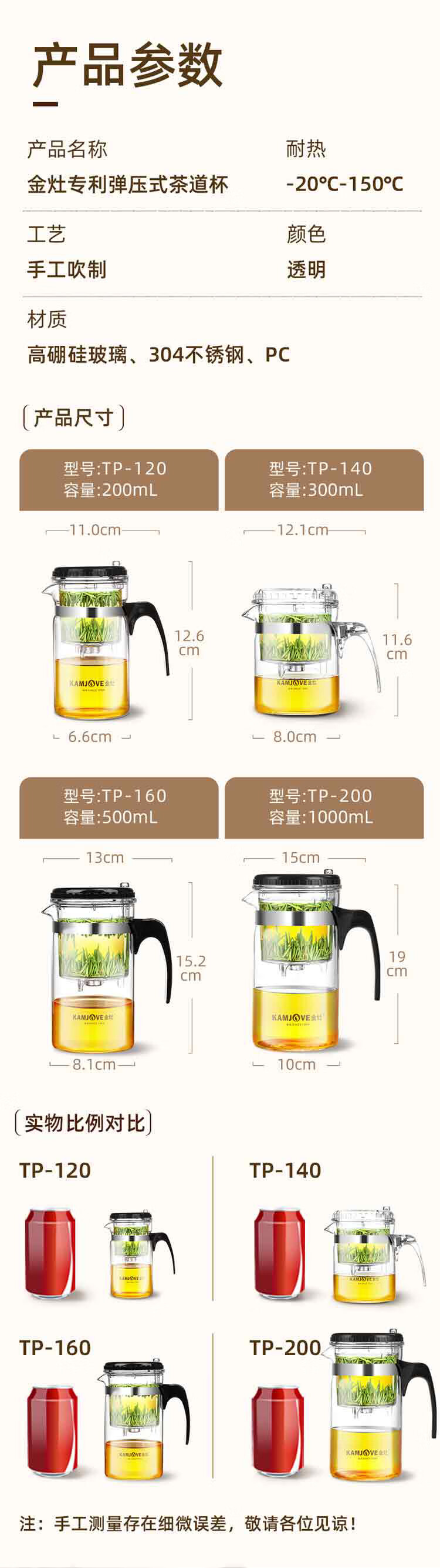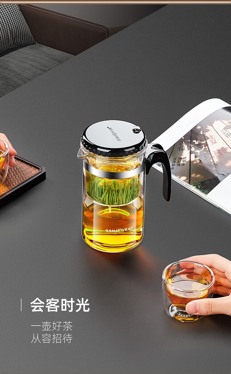 金灶(KAMJOVE)玻璃茶壺 按壓式飄逸杯 茶水壺玻璃茶具 茶水分離杯泡茶器泡茶壺 TP-160/500ml容量