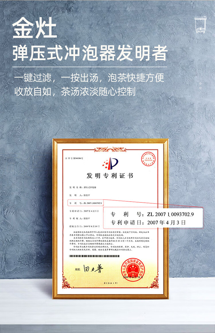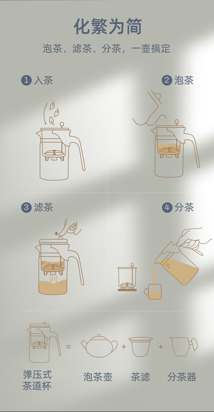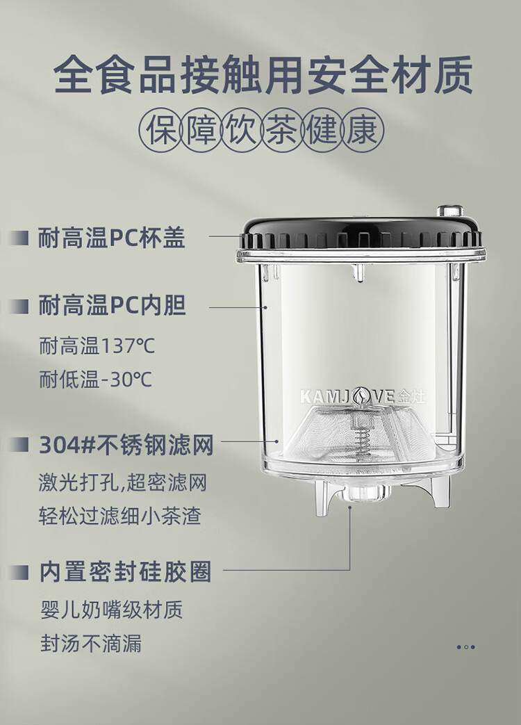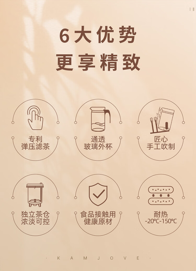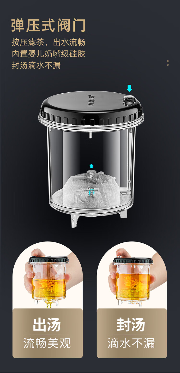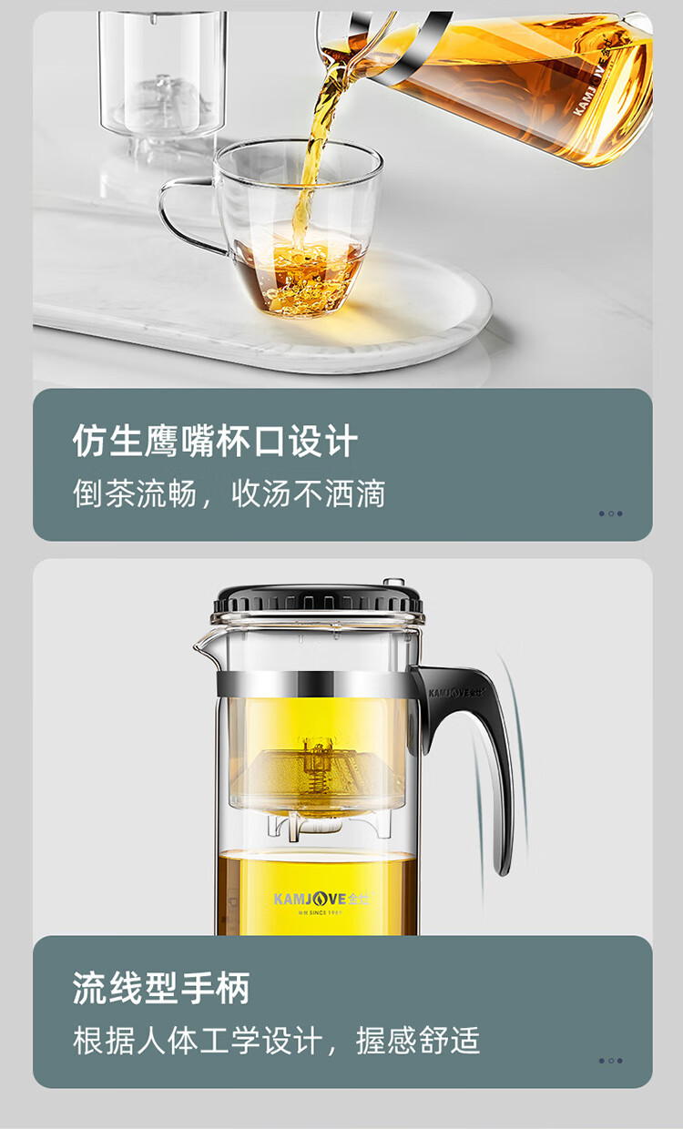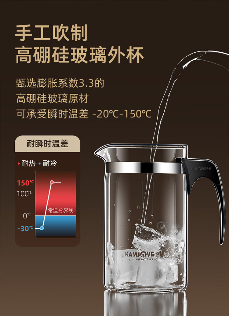 金灶(KAMJOVE)玻璃茶壺 按壓式飄逸杯 茶水壺玻璃茶具 茶水分離杯泡茶器泡茶壺 TP-160/500ml容量
