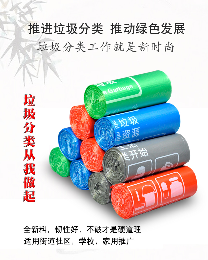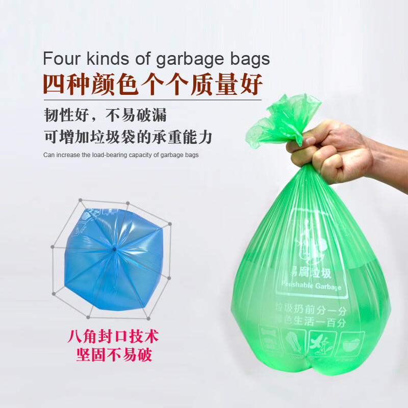 四色分類垃圾袋 可回收物其它廚余有害平口環(huán)保社區(qū)塑料袋分類垃圾袋(一包4卷) 45x50cm