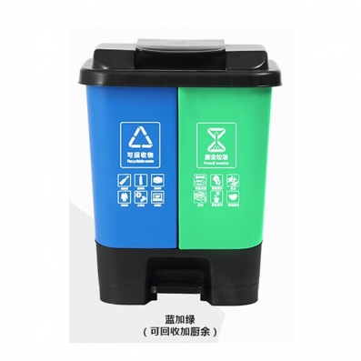 雙桶分類垃圾桶【廚余垃圾+其他垃圾】分類分離腳踏垃圾桶 20L