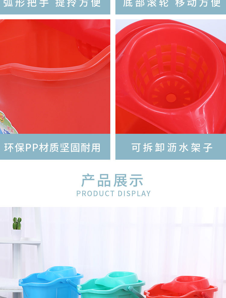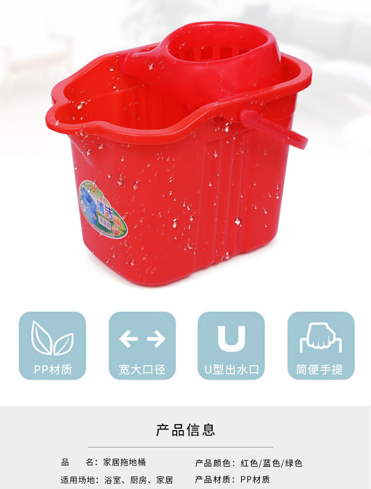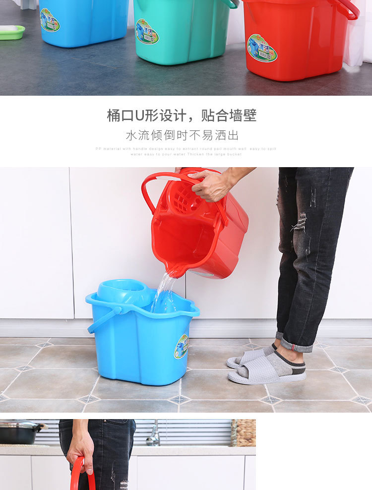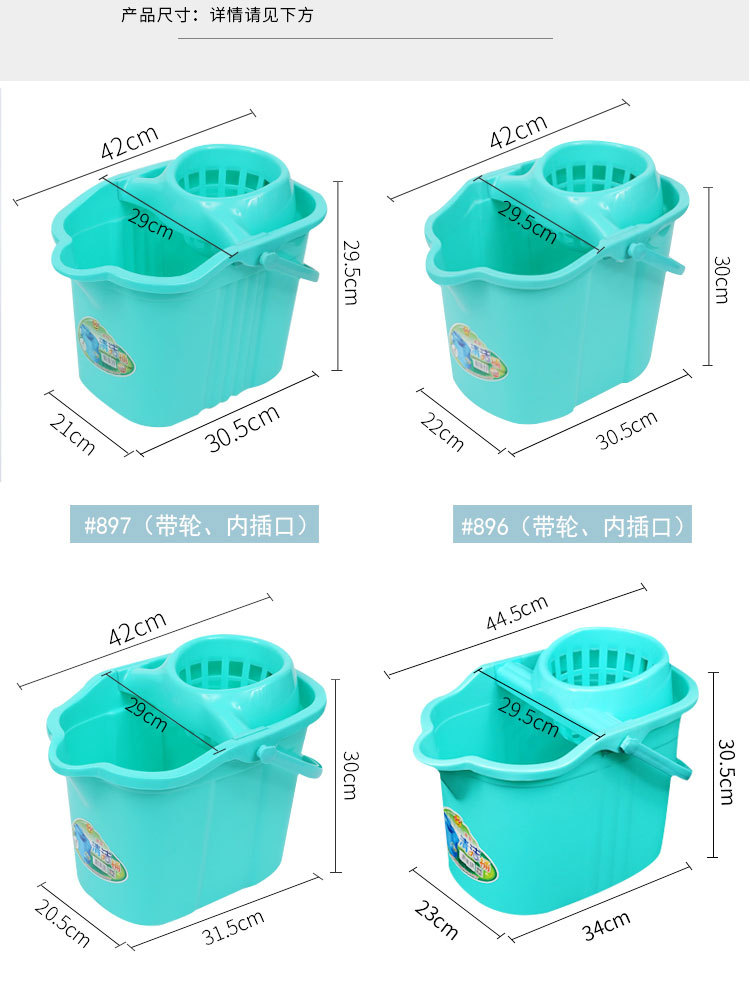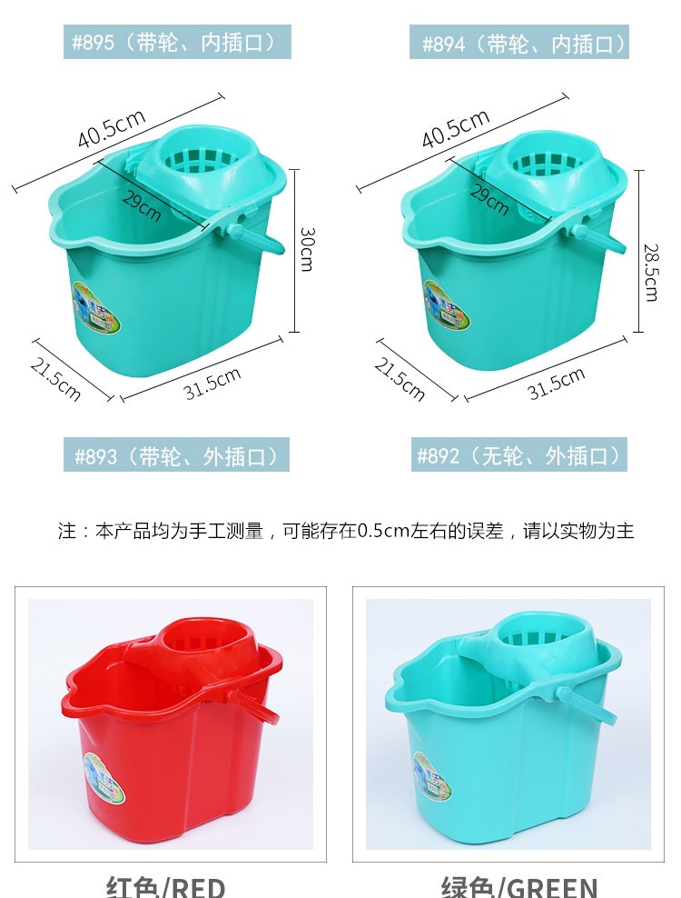 華順895墩布桶 42x27x30cm PP塑料拖地桶 家用清潔手提滑輪拖把桶 簡潔瀝干脫水桶地拖桶清潔