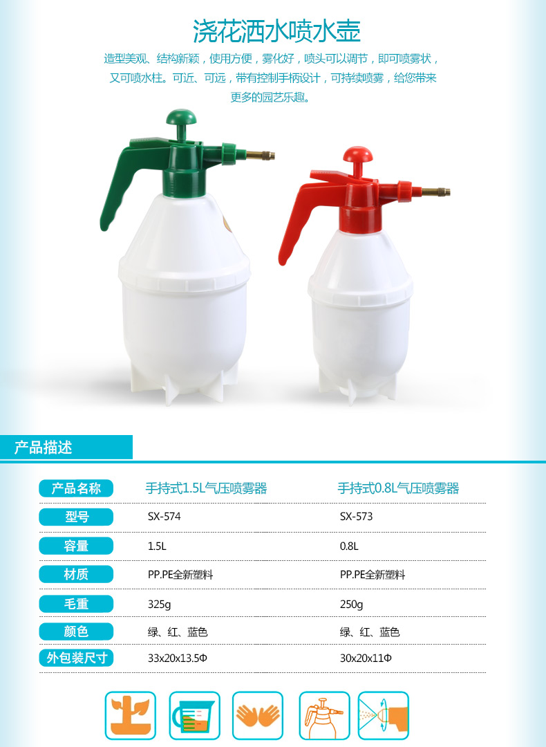 市下(seesa) 園藝花園殺蟲(chóng)噴壺家用噴霧器澆水灑水噴水壺消毒0.8升 0.8L(紅、綠、藍(lán)顏色隨機(jī))