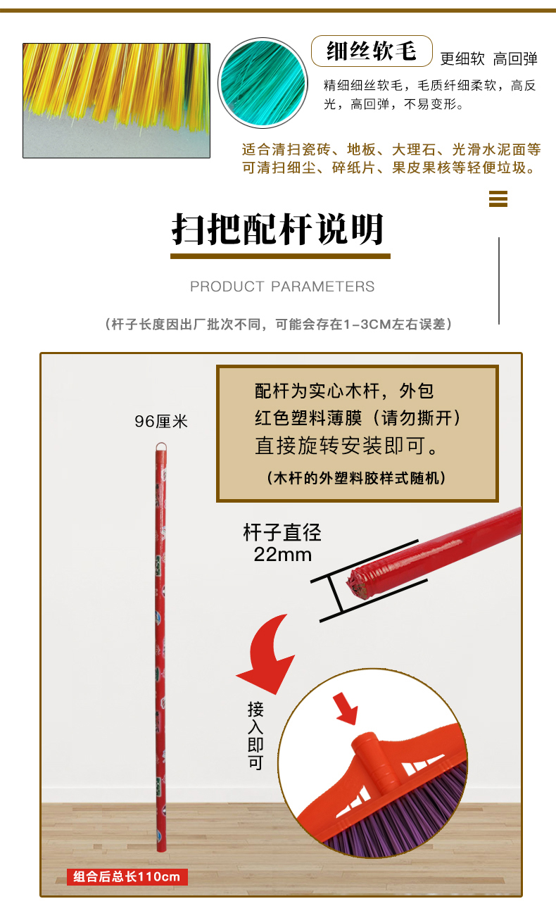 潔寶 007木柄塑料掃把單個(gè)家用學(xué)校掃帚硬毛環(huán)衛(wèi)宿舍工車間廠普通掃帚硬毛笤帚批發(fā) 直頭硬毛開絲(桿長(zhǎng)1.1cm)