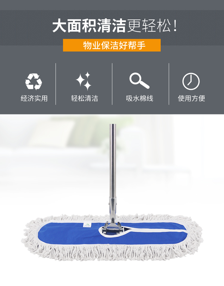 東馨 40CM 平板拖把酒店學(xué)校工廠棉線拖把瓷磚大碼拖把地拖平拖排拖大號塵推套裝頭+桿 計價單位:套