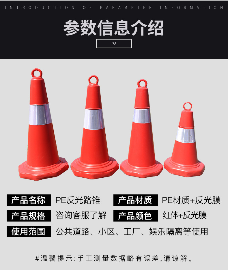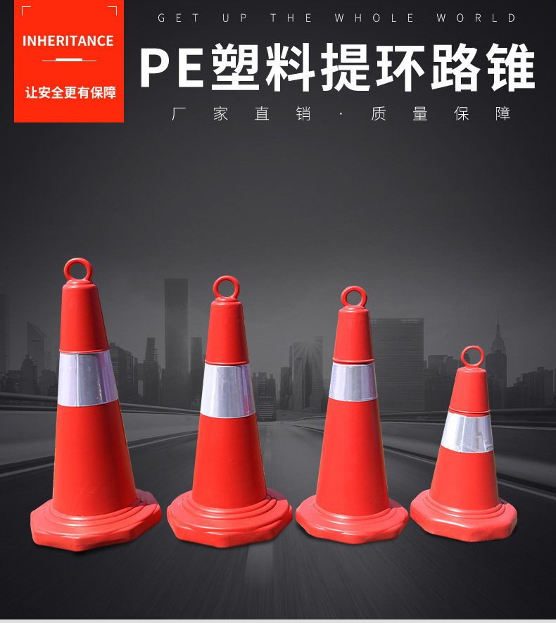 塑料路錐70cm提環(huán)雪糕筒PE反光錐安全警示錐柱隔離路樁路障路標