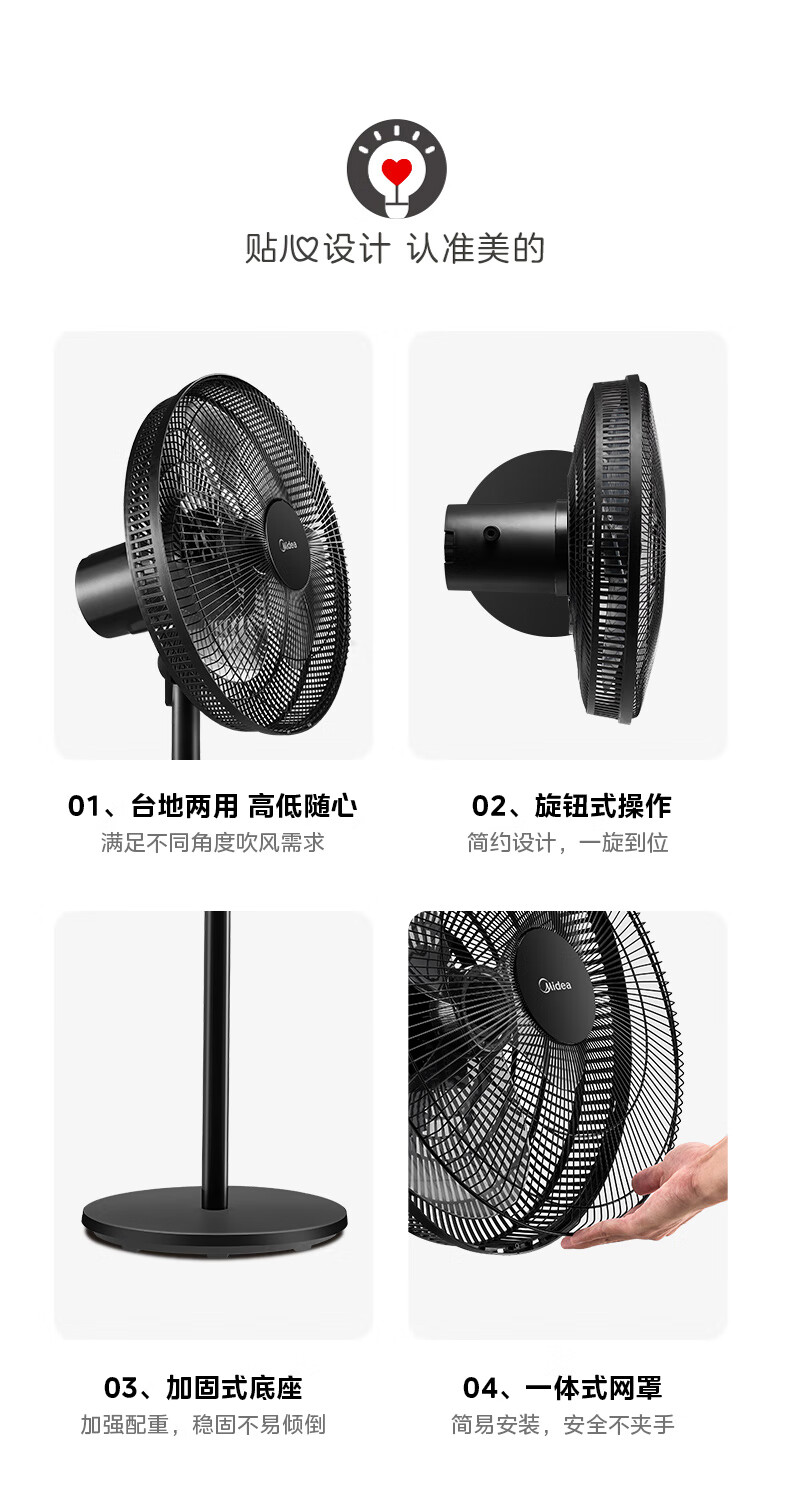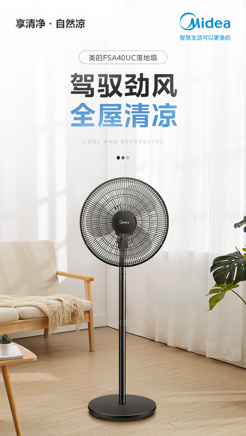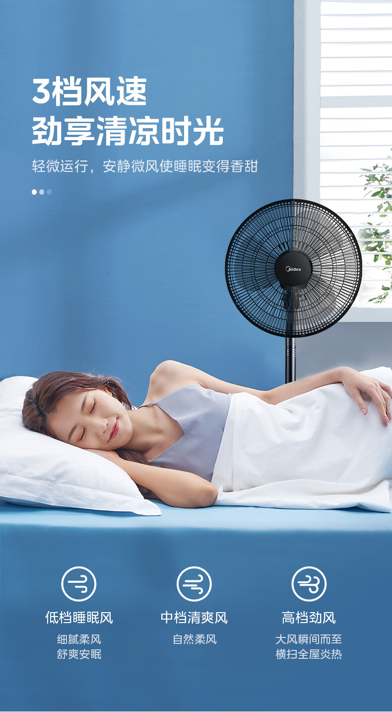 美的(Midea)落地電風扇FSA40UC機械式強風輕音16吋臺立兩用3檔風速可調(diào)大角度左右送風(線下同款)