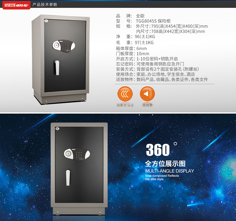 全能 TGG8045 保險(xiǎn)柜 795x454x400mm 96公斤