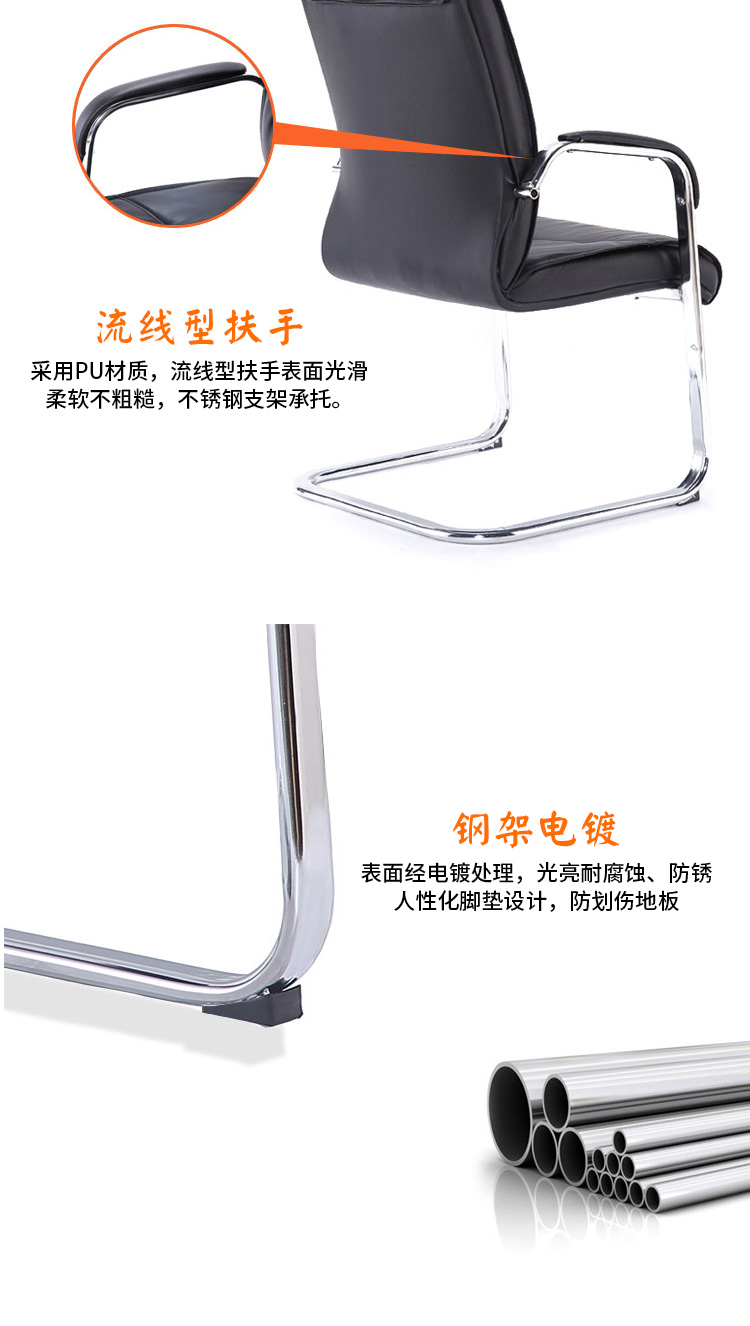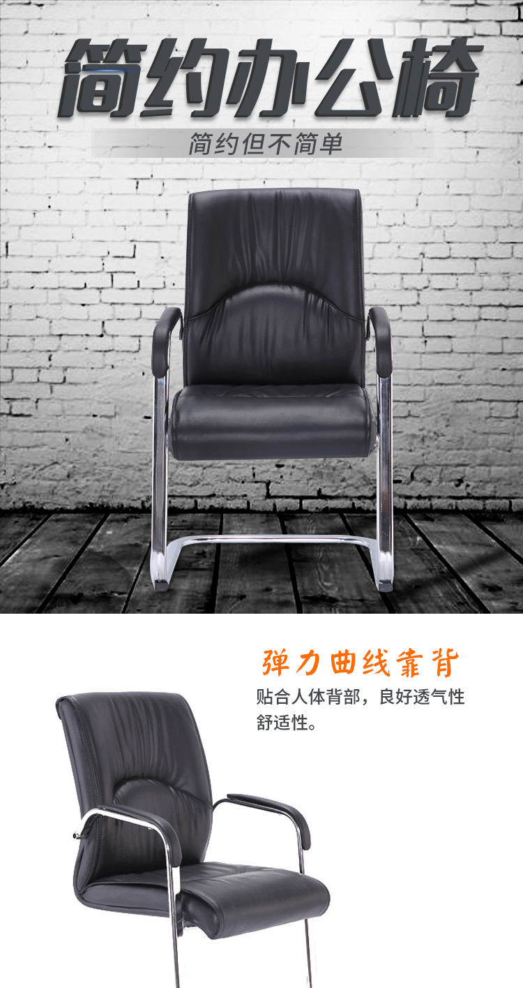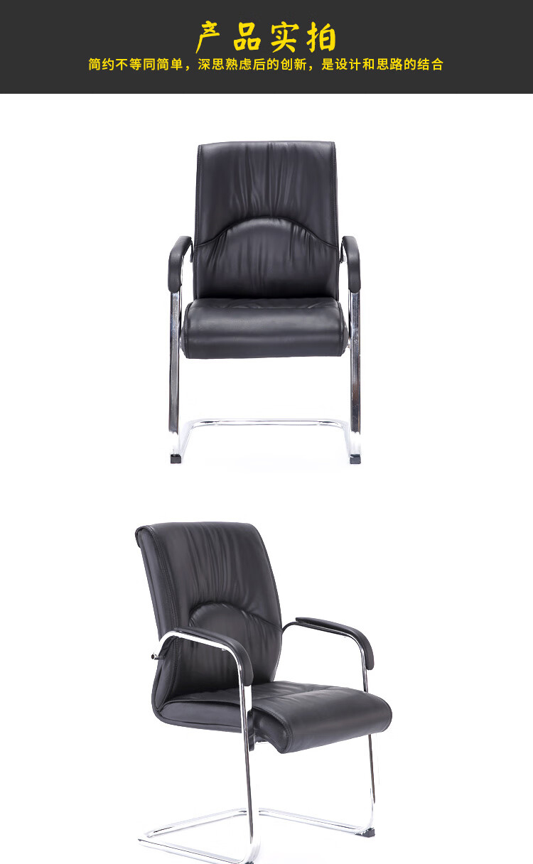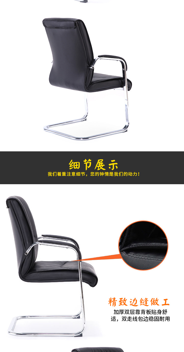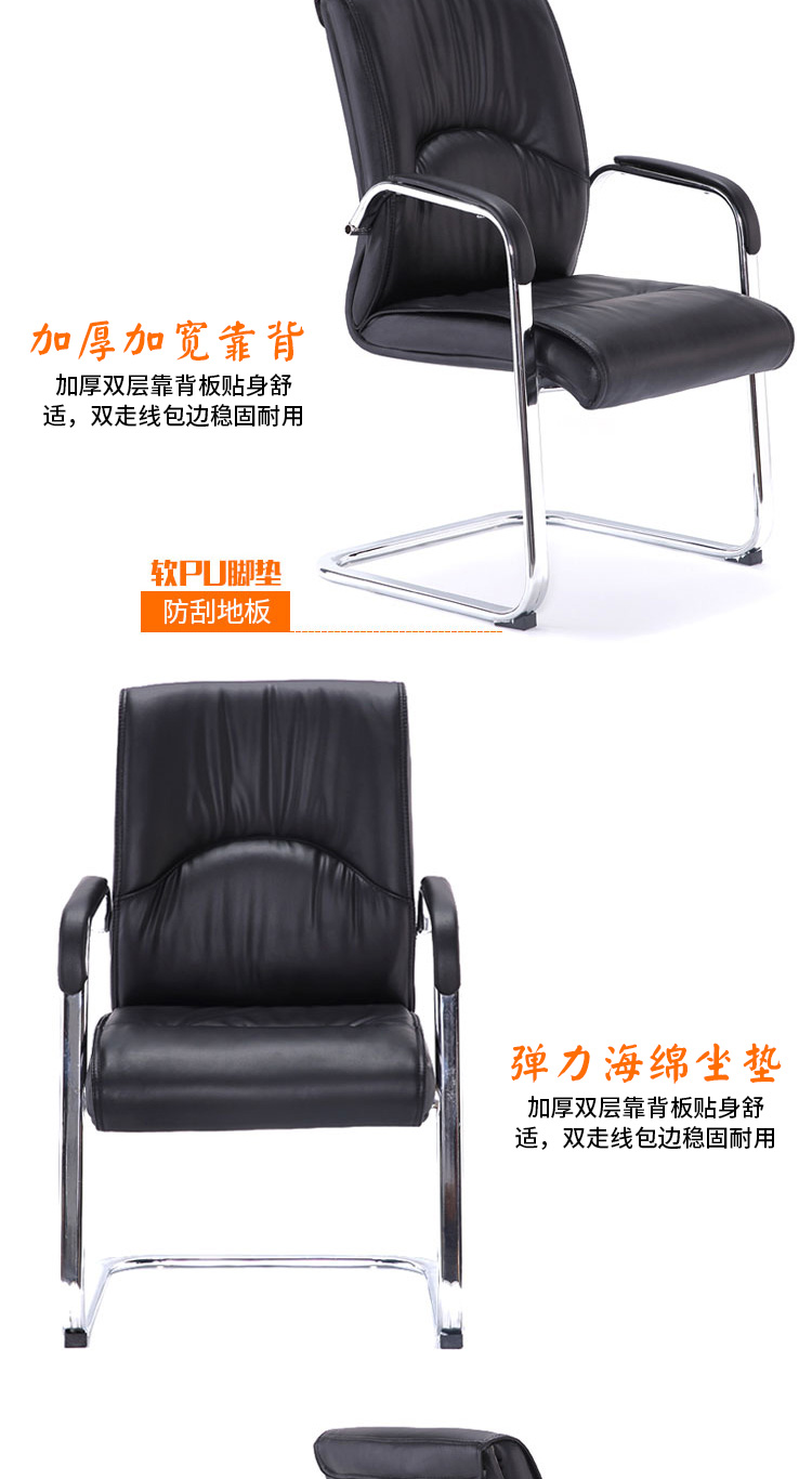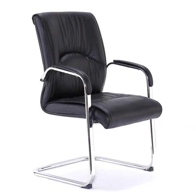 F050 辦公椅會議椅子商務(wù)班前椅休閑職員椅電腦椅弓形固定家用皮椅(西皮)黑色