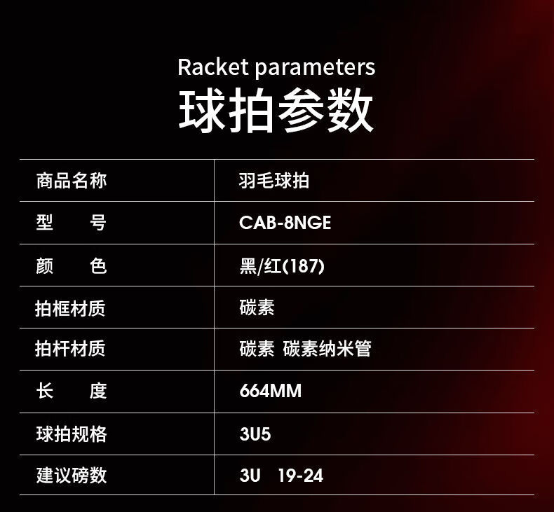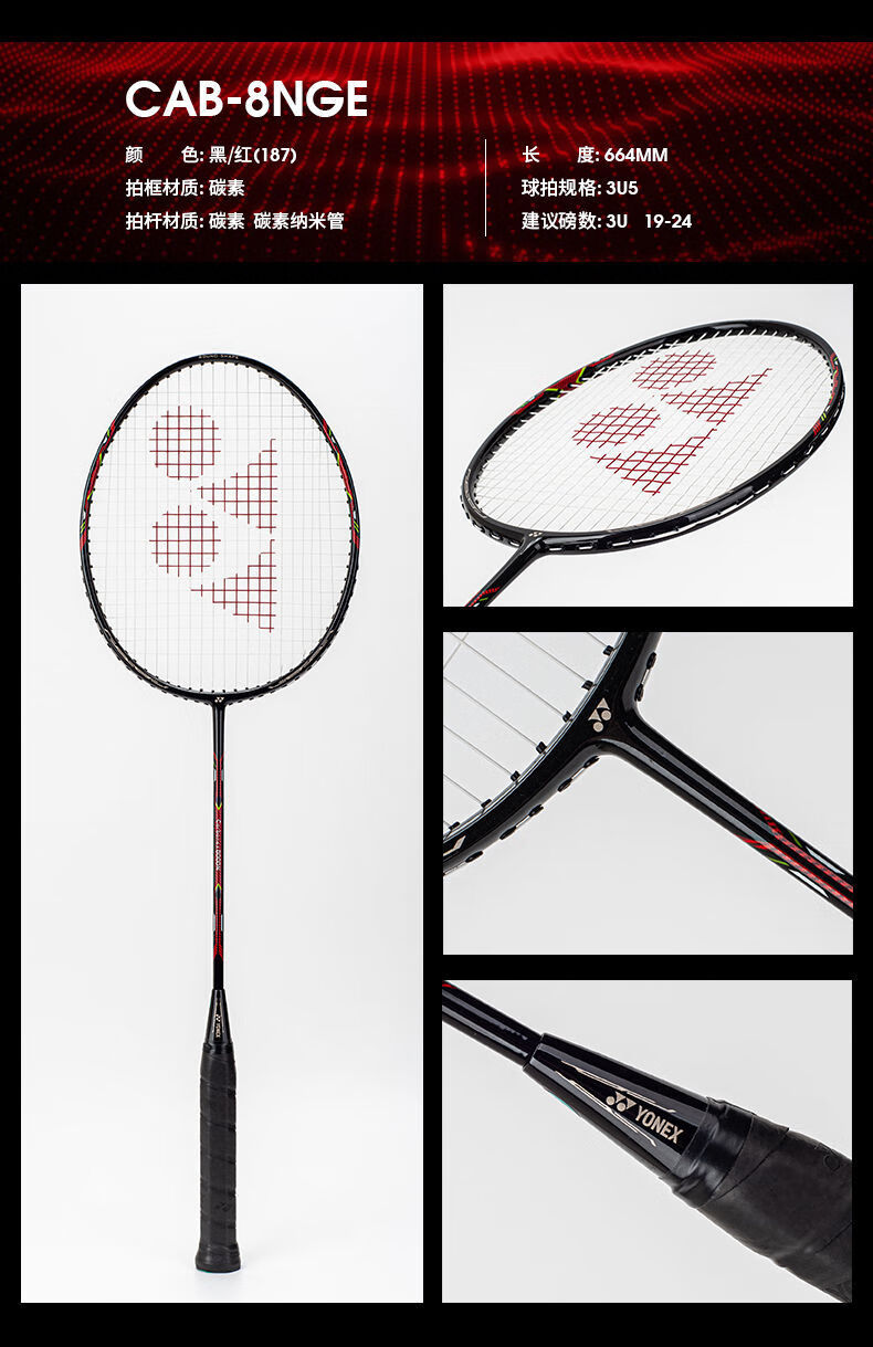 尤尼克斯(YONEX)YONEX尤尼克斯羽毛球拍全碳素高彈超輕初學(xué)者學(xué)生成人帶線CAB臺產(chǎn) CAB-8NGE-187黑/紅