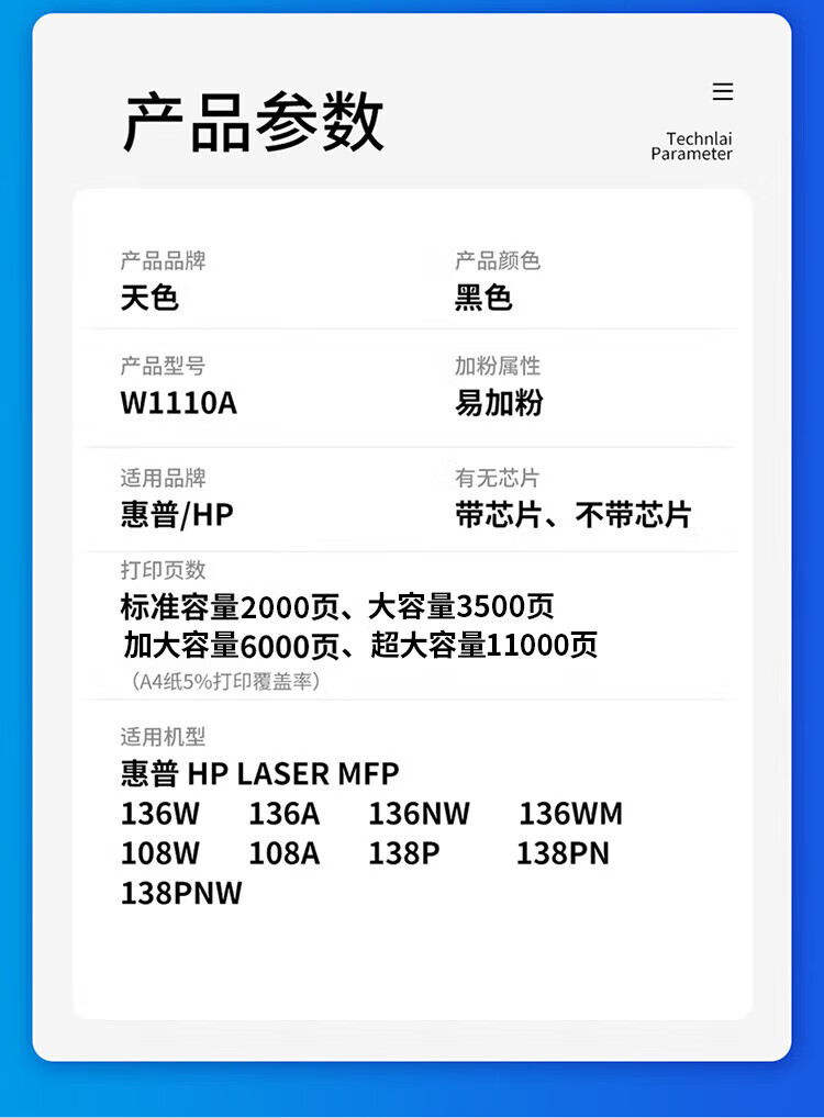 天色W1110A標(biāo)準(zhǔn)版硒鼓(易加粉)【1500頁(yè)】