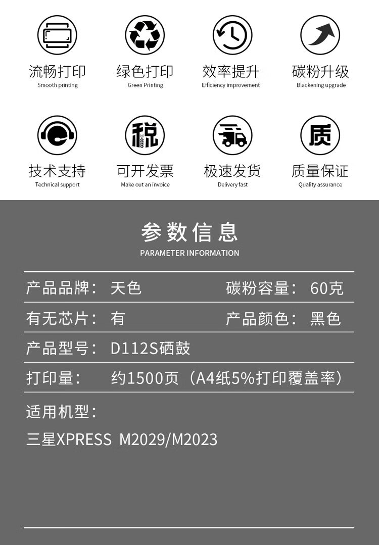 天色 D112S硒鼓中文版(1500頁(yè))適用三星M2023 SL-M2029打印機(jī)粉盒MLT-D112L