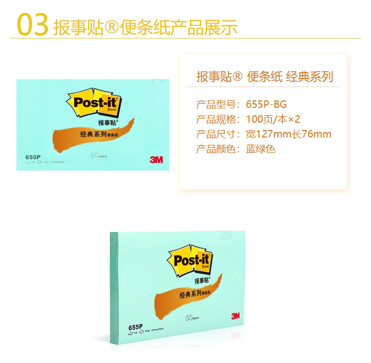 3M 655 經典系列便利貼 藍綠色 76*127mm