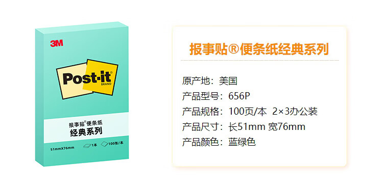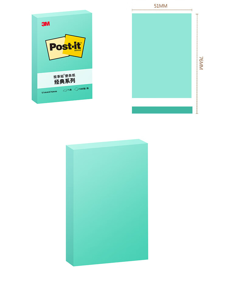 3M 656 經(jīng)典系列便利貼 藍(lán)綠色 51*76mm