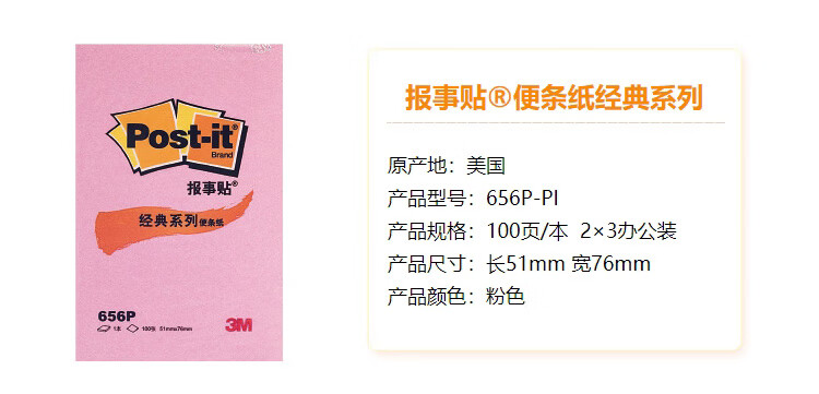 3M 656 經(jīng)典系列便利貼 粉紅 51*76mm