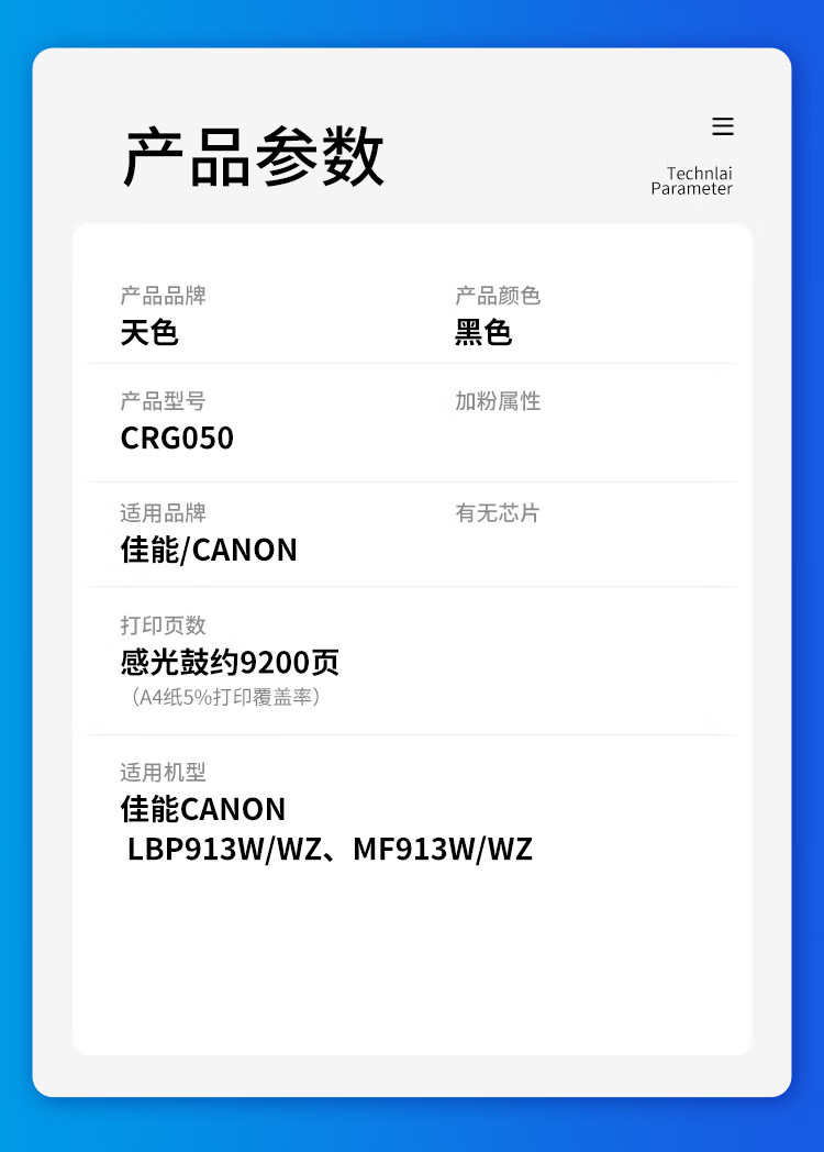 天色CRG-050鼓架(9200頁)適用佳能CRG-050硒鼓LBP913w粉盒LBP913wz墨盒MF913w碳粉盒MF913wz打印機碳粉crg050成像鼓050鼓架
