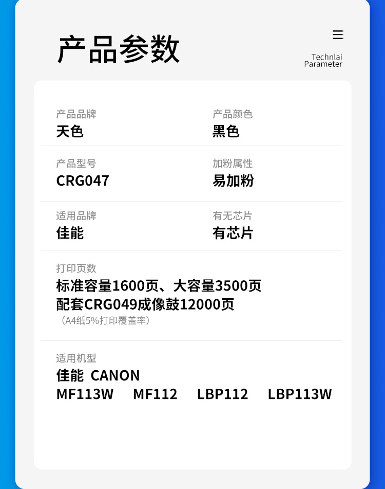 天色CRG047硒鼓/易加粉(1600頁)適用佳能MF113w粉盒MF112 LBP112 LBP113w打印機墨盒硒鼓碳粉