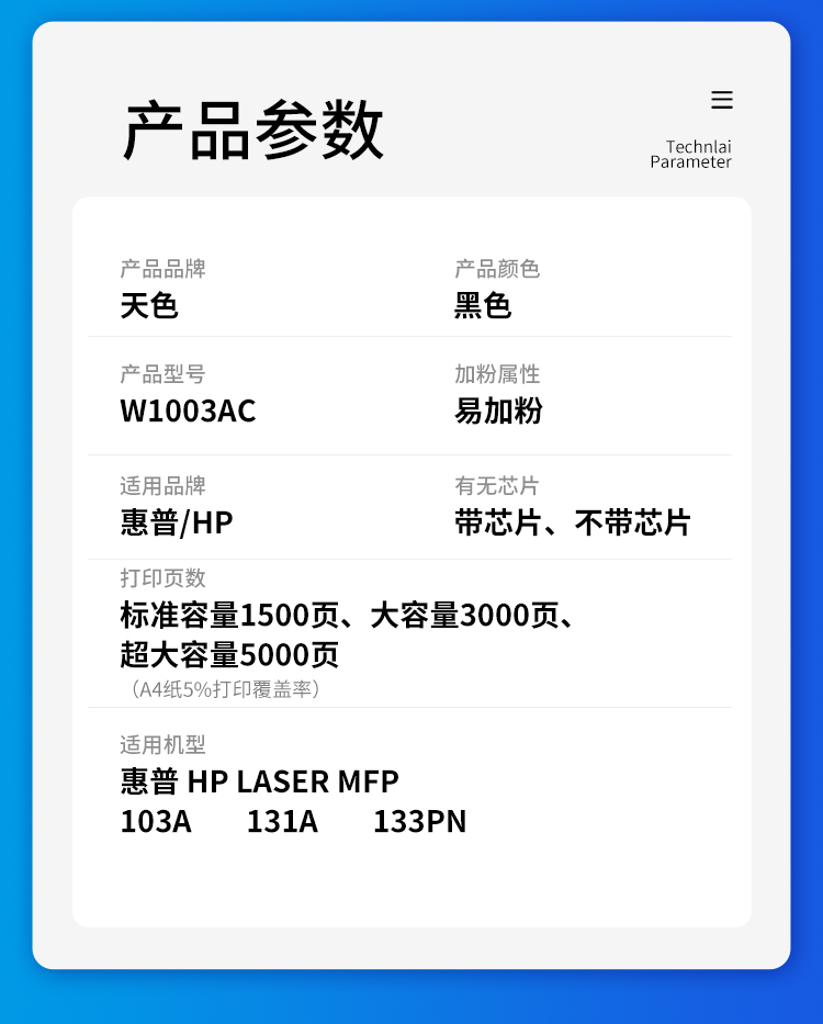 天色W1003AC硒鼓標(biāo)準(zhǔn)版(1500頁)適用惠普HP Laser 103a硒鼓MFP 131a 133pn打印機(jī)墨盒W1003AC粉盒