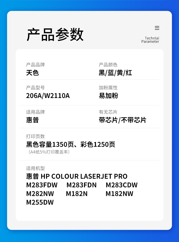 天色207a W2110A黑色 不帶芯片 標(biāo)準(zhǔn)量(1350頁(yè))適用惠普M283fdw硒鼓HP 206A M283fdn/cdw M282nw M182n M182nw M255DW墨粉盒207a W2110A黑色